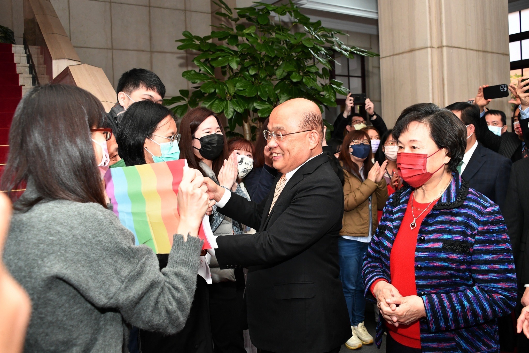 擔任監交人的副總統賴清德表示,卸任的蘇院長自2019年接任行政院長,4年來率領行政團隊協助國家走過非洲豬瘟、百年大疫、人口老化、少子女化、氣候變遷及複雜的國際情勢等種種挑戰,不僅讓經濟持續發展外,也使人民所受衝擊降到最低,並能維持正常生活,充分展現出蘇院長率領的團隊「有政府、會做事」的精神。此外,在面對婚姻平權、美豬、美牛食品進口等重大政策時,蘇院長團隊都可以秉持理念、展現決心、發揮毅力,逐一克服,讓臺灣爭取更多國際空間,並持續發展進步,今天蘇院長功成身退,完成階段性任務,他要由衷表達感謝之意。