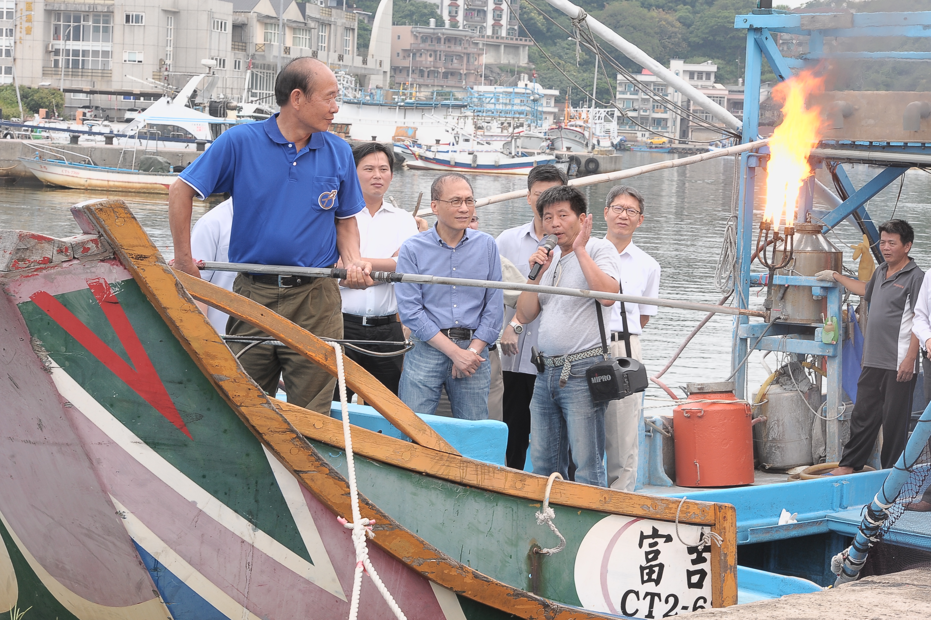 隨後,林院長前往金山區參訪蹦火船文化,於磺港與漁民對談,瞭解漁民的漁獲情形,並登上蹦火船,體驗蹦火捕魚過程。(撰稿:謝逸聆,電話02-23410648)