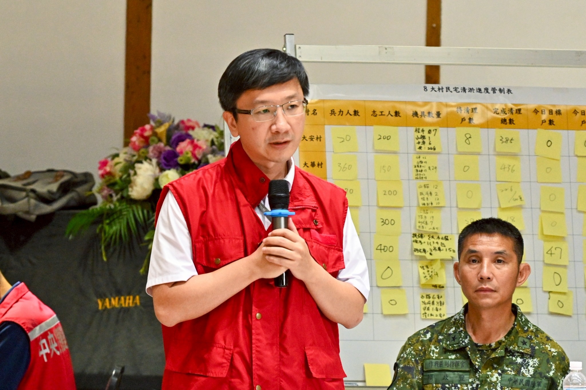 有關學校復課情形,季總協調官說明,光復地區2國中、5國小均已恢復實體上課,而光復商工仍有非教學區的地下室正在清淤,因此目前採線上上課方式,預計10月13日恢復實體上課;此外,大進國小目前仍有121位收容民眾,他也責成衛生福利部及原住民族委員會共同合作,協調是否將121位收容居民轉入附近旅宿地點。