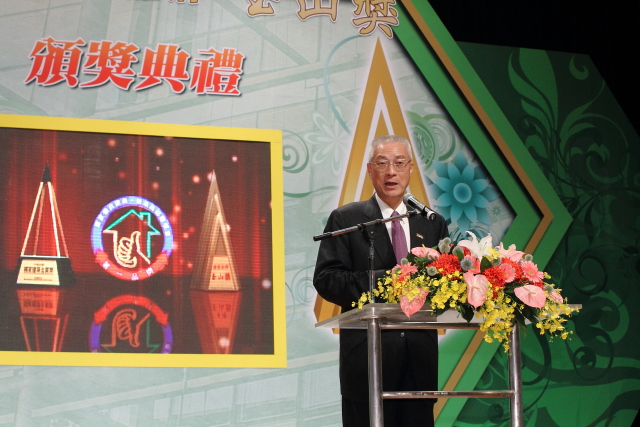 行政院長吳敦義今(12)日出席第13屆國家建築金質獎暨第8屆國家品牌玉山獎頒獎典禮,期許各領域的企業同心協力,提升品質及品牌信譽。