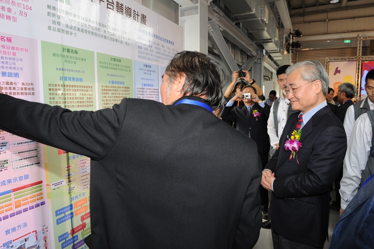 有關3D列印的推動,毛院長表示,3D列印技術除了能直接應用於產品,也可引進鑄造業,導入創意,有助於提升複雜模具的鑄造效率,產生全面翻轉性的競爭力,他在接任行政院長後,即積極推動鑄造業的再造工作,期使鑄造業從骯髒、危險性質的產業,成為3C(Clean、Competitive、Career)結合創意(Creativity)的產業。