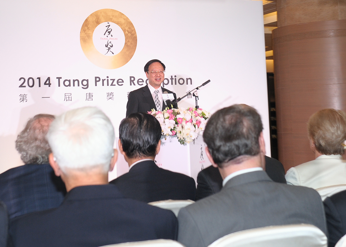 行政院長江宜樺今(15)日晚間出席於故宮博物院舉辦的「第一屆唐獎頒獎典禮」歡迎酒會時表示,唐獎的設立意義非凡,是以新視野與新思維所注入的實際行動與思考,不僅激勵世界各地優秀人才發揮所長,貢獻社會,也能鼓勵世人從不同角度看世界,進而改變世界,相信唐獎很快將成為國際間肯定相關領域人士最重要的獎項。
