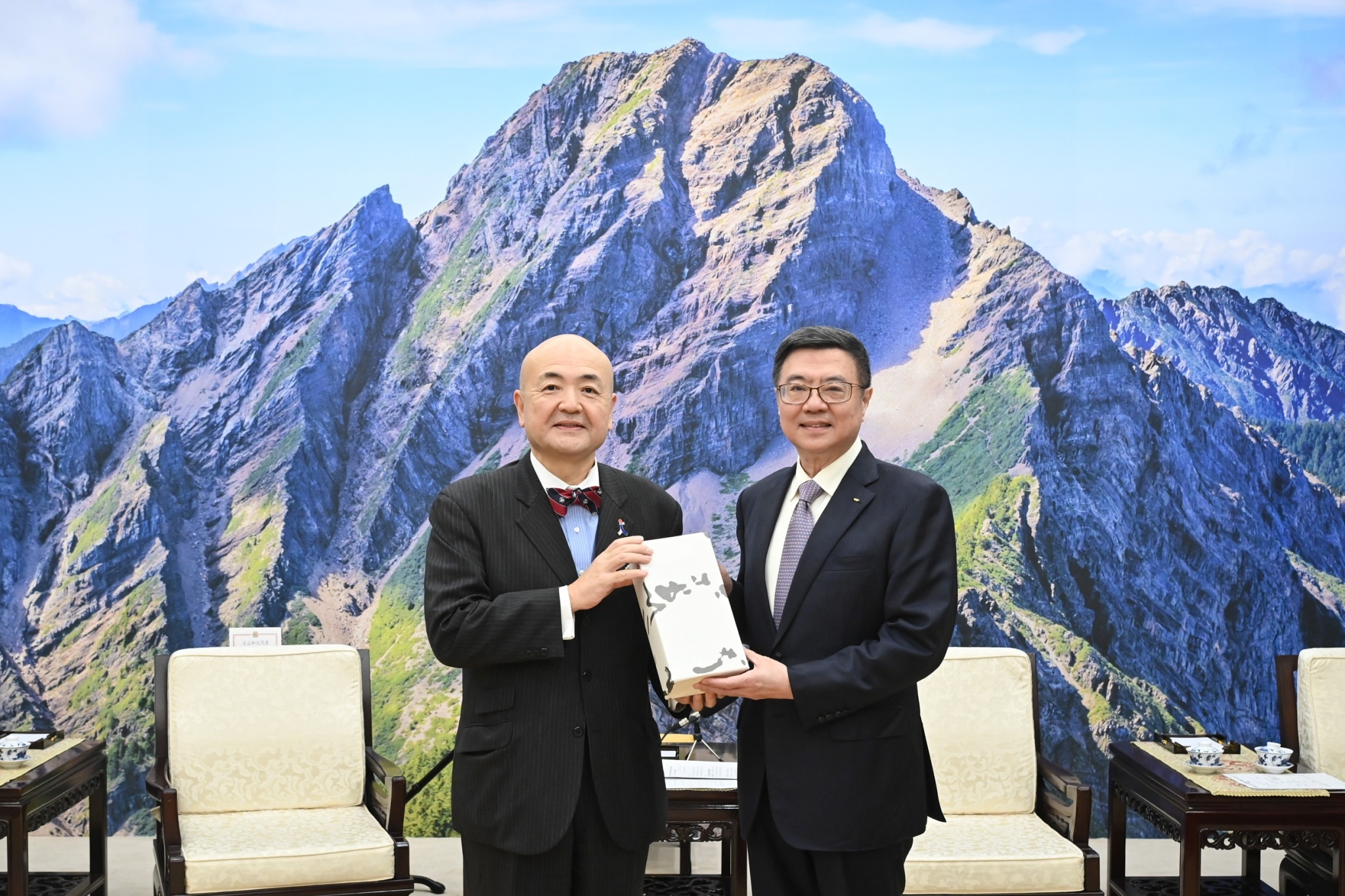 卓院長進入會場後,首先與片山代表熱情握手致意,竭誠歡迎片山代表到訪。院長指出,能在不同地方看到朋友,令他倍感親切,感謝片山代表本(5)月20日出席賴清德總統、蕭美琴副總統就職典禮相關活動,並協助許多日本友人及代表團前來觀禮,對增進臺日友誼與交流,帶來極大助益。