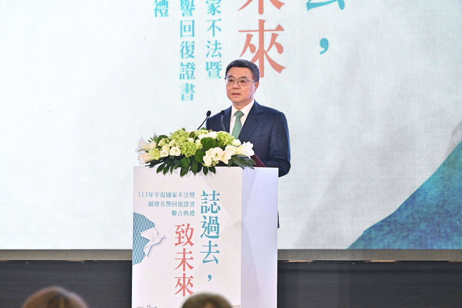 卓院長表示,今天大家齊聚在此,是對歷史的反思與檢討,也象徵臺灣民主政治發展至今,已有階段性成果。他要特別向大家說明政府推動轉型正義工作的進度,包括促進轉型正義委員會結束階段性任務時,已完成5,983筆平復司法不法案件,法務部2022年5月承接平復司法不法業務後,2年多來已新增平復1,891件司法不法和2,023件行政不法案件。