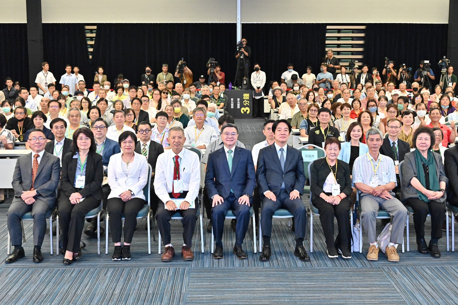 燈箱點亮儀式完成後,賴總統、卓院長、陳菊主委、行政院林明昕政務委員、謝子涵代理發言人、內政部劉世芳部長、教育部鄭英耀部長、法務部鄭銘謙部長、衛生福利部邱泰源部長、文化部李遠部長、國家發展委員會彭立沛副主任委員、柯建銘立法委員、張雅琳立法委員以及權利回復基金會張文貞董事長等人一同合影留念。最後,賴總統頒發名譽回復證書予政治受難者邱煌生前輩及受難者家屬吳永清、陳秀潔等3人並合影,場面溫馨。