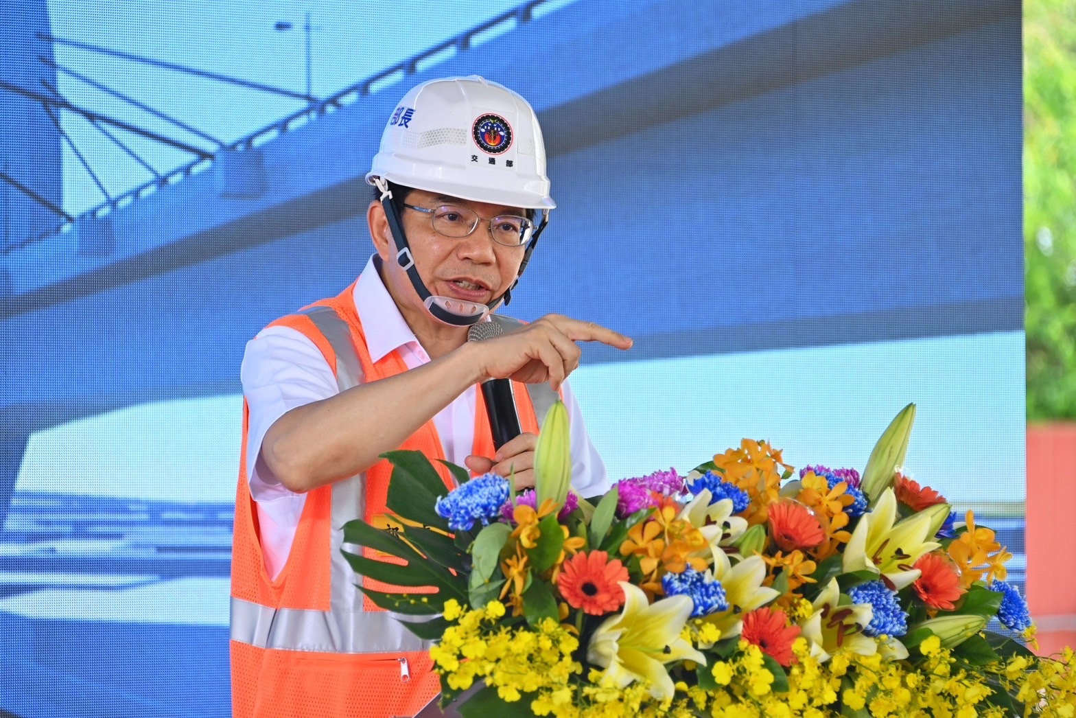 此行,陳院長首先聽取交通部高公局趙興華局長簡報工程內容、辦理歷程、興建挑戰與預期工程效益,致詞後與貴賓及工程團隊合影留念,隨後在趙局長的解說下,進行現地視察,了解工程現況與進度。