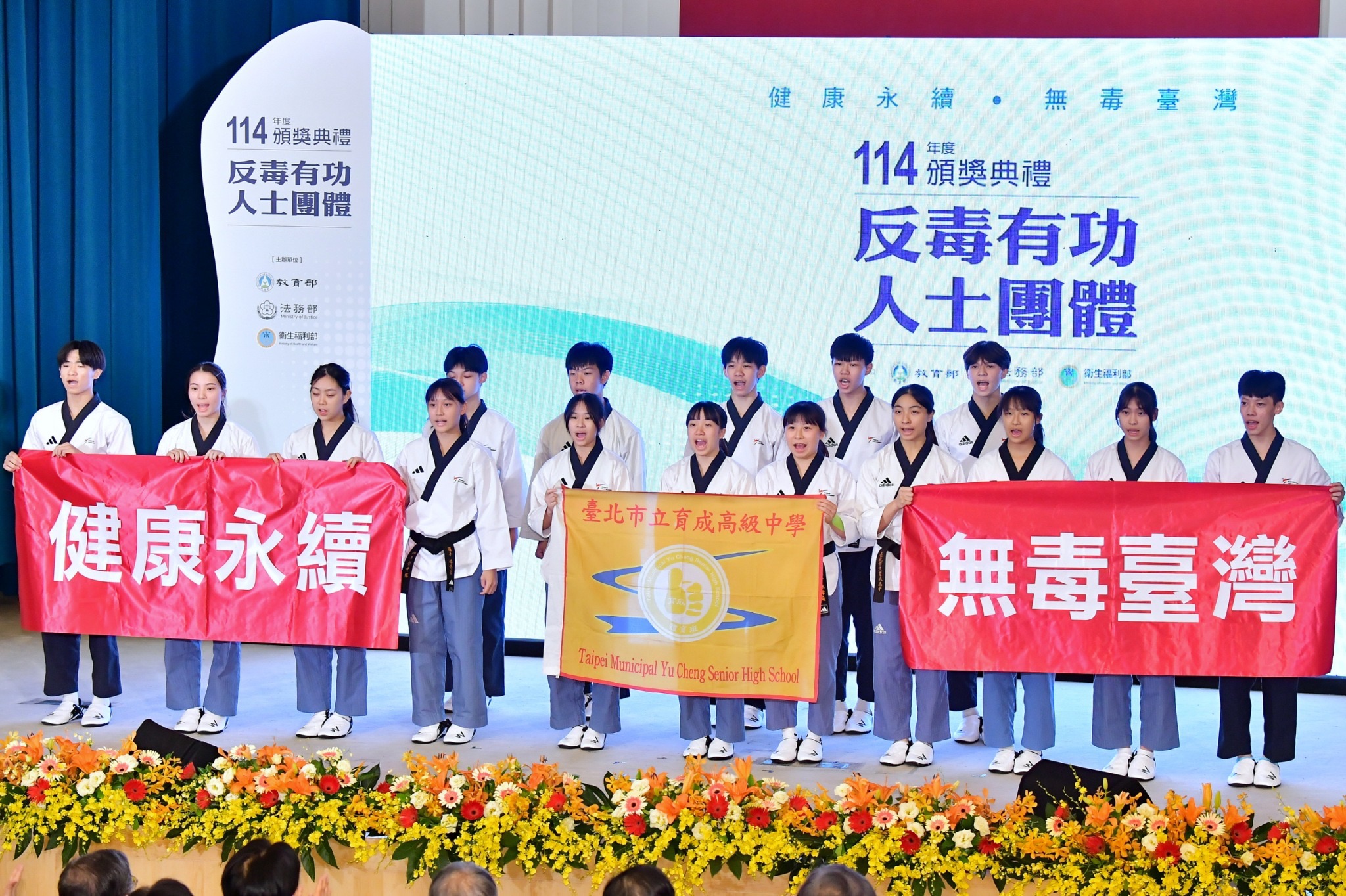 今日頒獎活動,總統致詞結束後,頒發獎座予13位民間獲獎單位代表,並合影留念。隨後,卓院長親自頒發獎座並握手勉勵13位公部門獲獎單位代表,以及11位績優地方政府毒品危害防制中心代表。包括行政院林明昕政務委員、李慧芝發言人、教育部鄭英耀部長、法務部鄭銘謙部長、衛生福利部邱泰源部長、海洋委員會管碧玲主任委員、財政部謝鈴媛次長、臺灣高等檢察署張斗輝檢察長等人均出席今日活動。