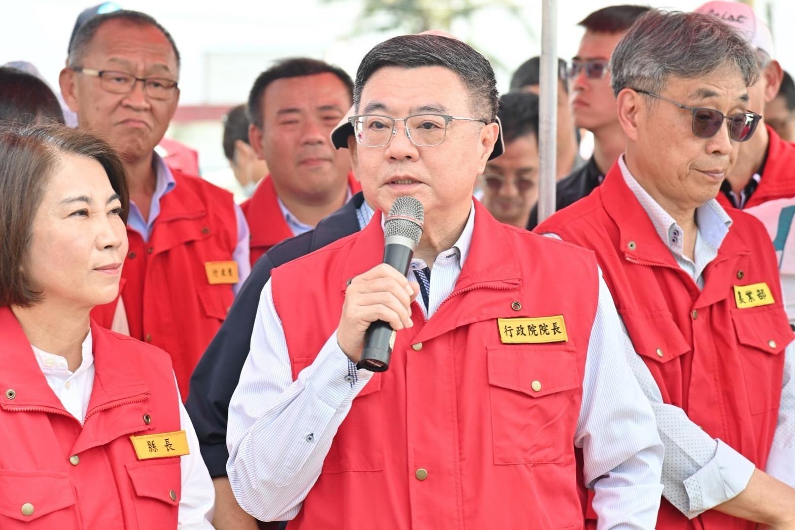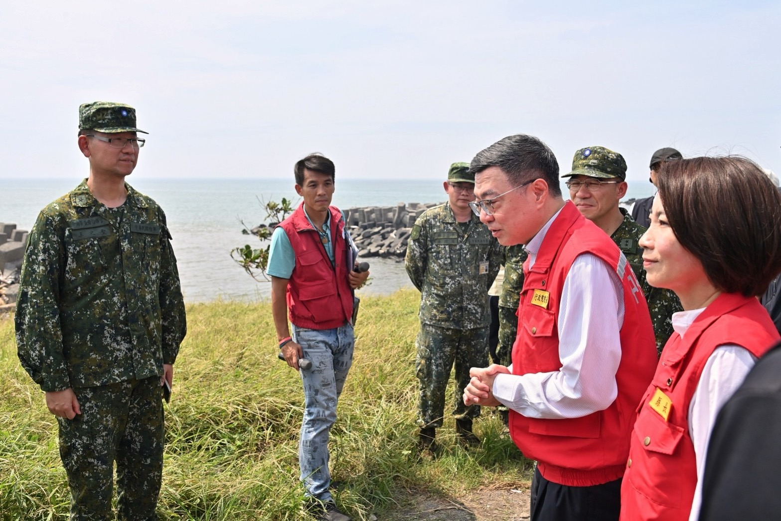 致詞結束後,卓院長偕同經濟部郭智輝部長、農業部陳駿季部長、行政院李慧芝發言人、行政院南部聯合服務中心許乃文執行長、陳文亮副執行長、徐富癸立法委員、莊瑞雄立法委員、鍾佳濱立法委員、屏東縣周春米縣長等人,於下寮海堤破堤旁現地視察災損狀況,並於離開前慰勉在場國軍弟兄們的辛勞,請大家在救災時務必留意自身安全。