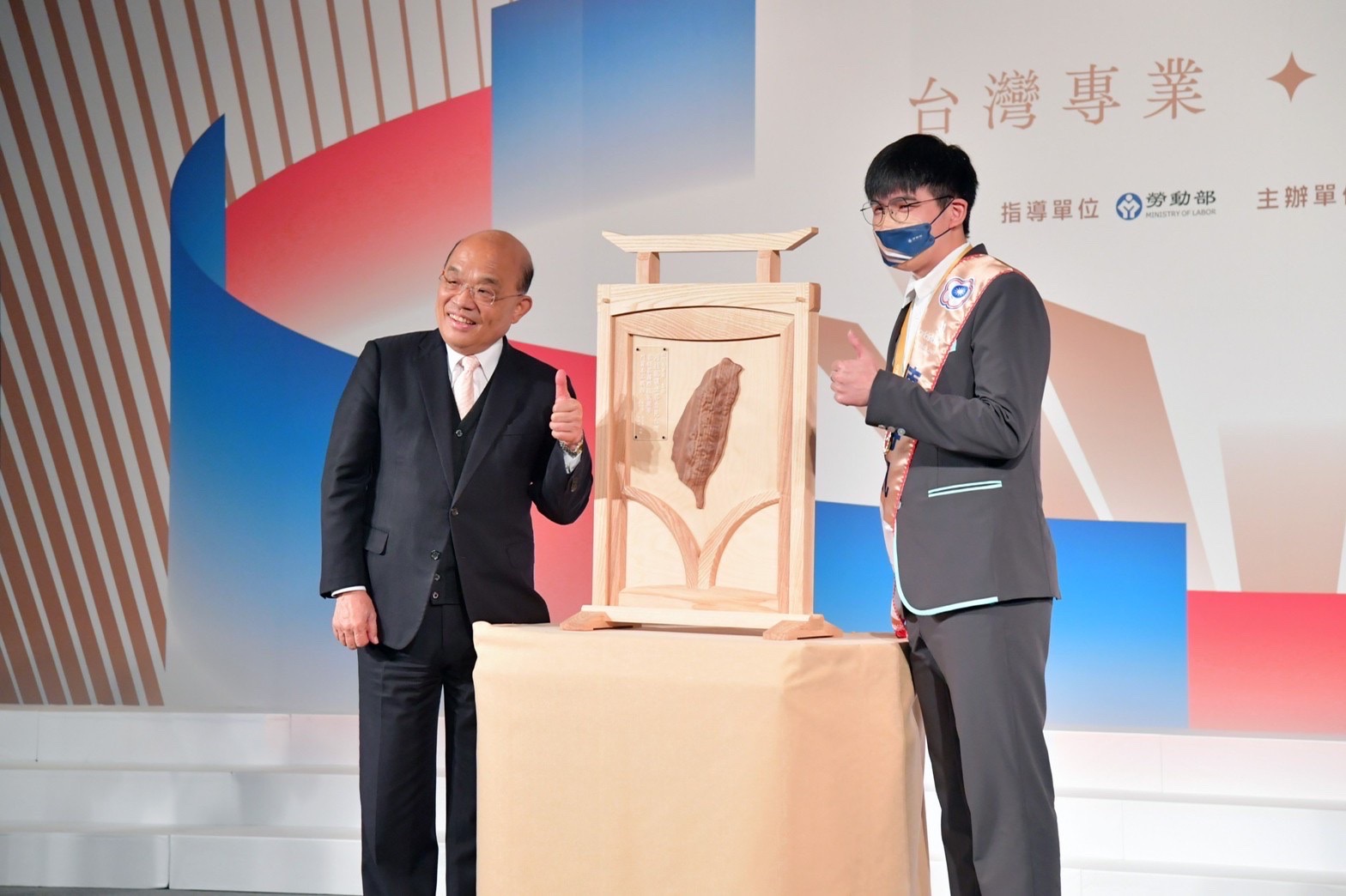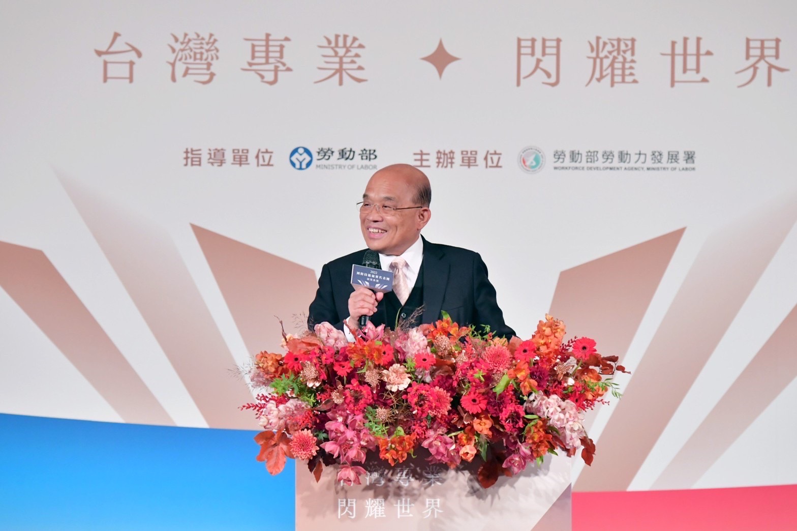 蘇院長表示,政府在各方面用盡誠意和力量,希望各位出人頭地、演出精彩,同時也希望藉由此次頒獎,讓年輕一輩看到前輩們傑出的表現,進而見賢思齊,讓臺灣代代都出人才。最後,蘇院長也再次感謝勞動部許銘春部長領導同仁有方,妥適照顧培訓選手,讓他們感受到溫暖和希望,更被世界看見,也請大家一起加油打拚,讓臺灣更好。