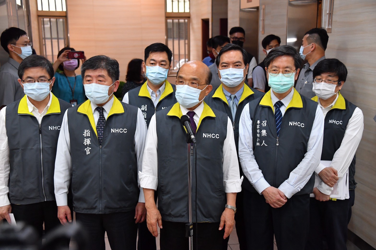 此行,蘇院長除聽取指揮中心指揮官陳時中報告說明防治疫情新措施外,並以視訊連線方式與各縣市首長針對防疫相關作為進行溝通,縣市首長發言踴躍,隨後院長及相關部會也針對縣市首長提問及建議事項做出回應。