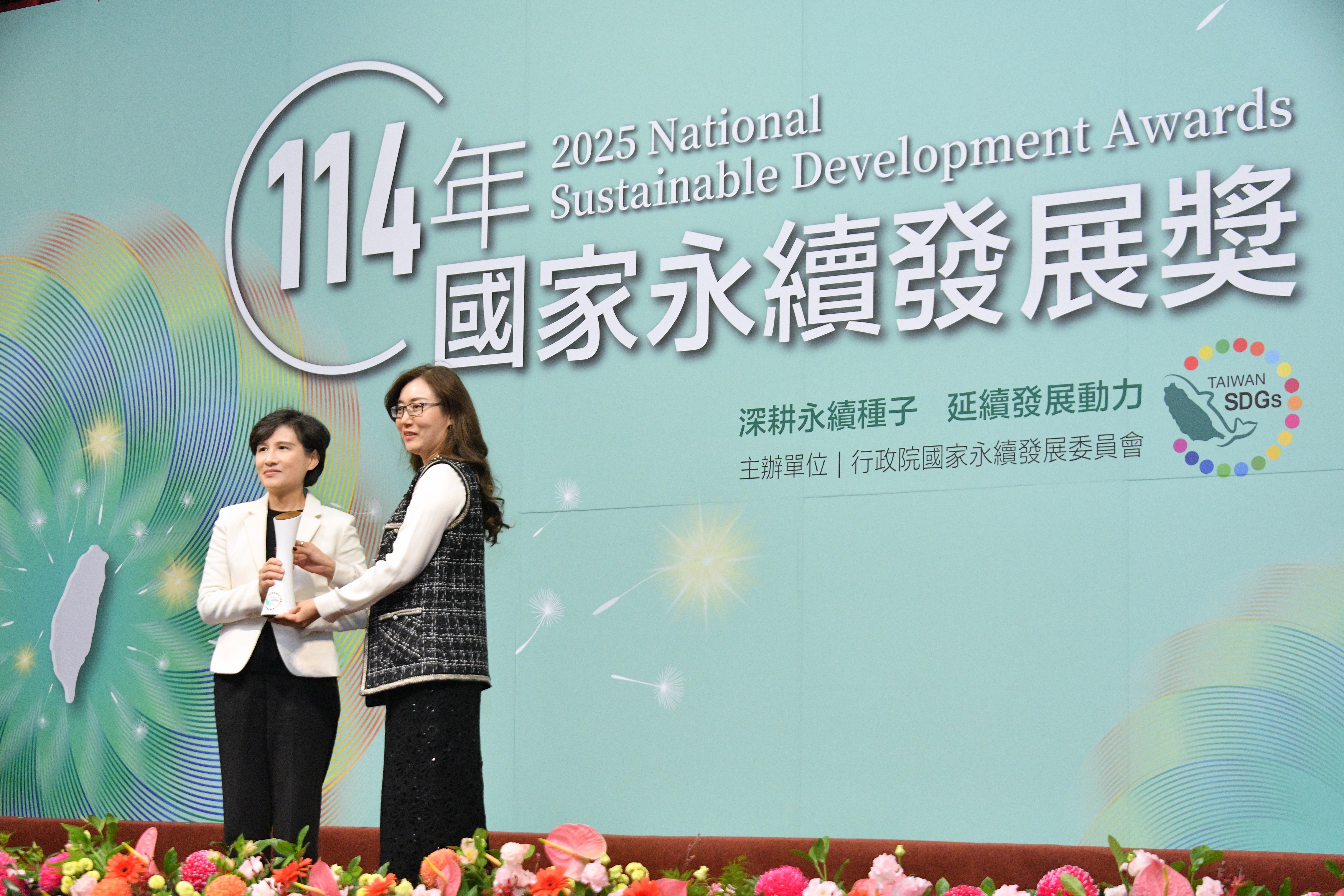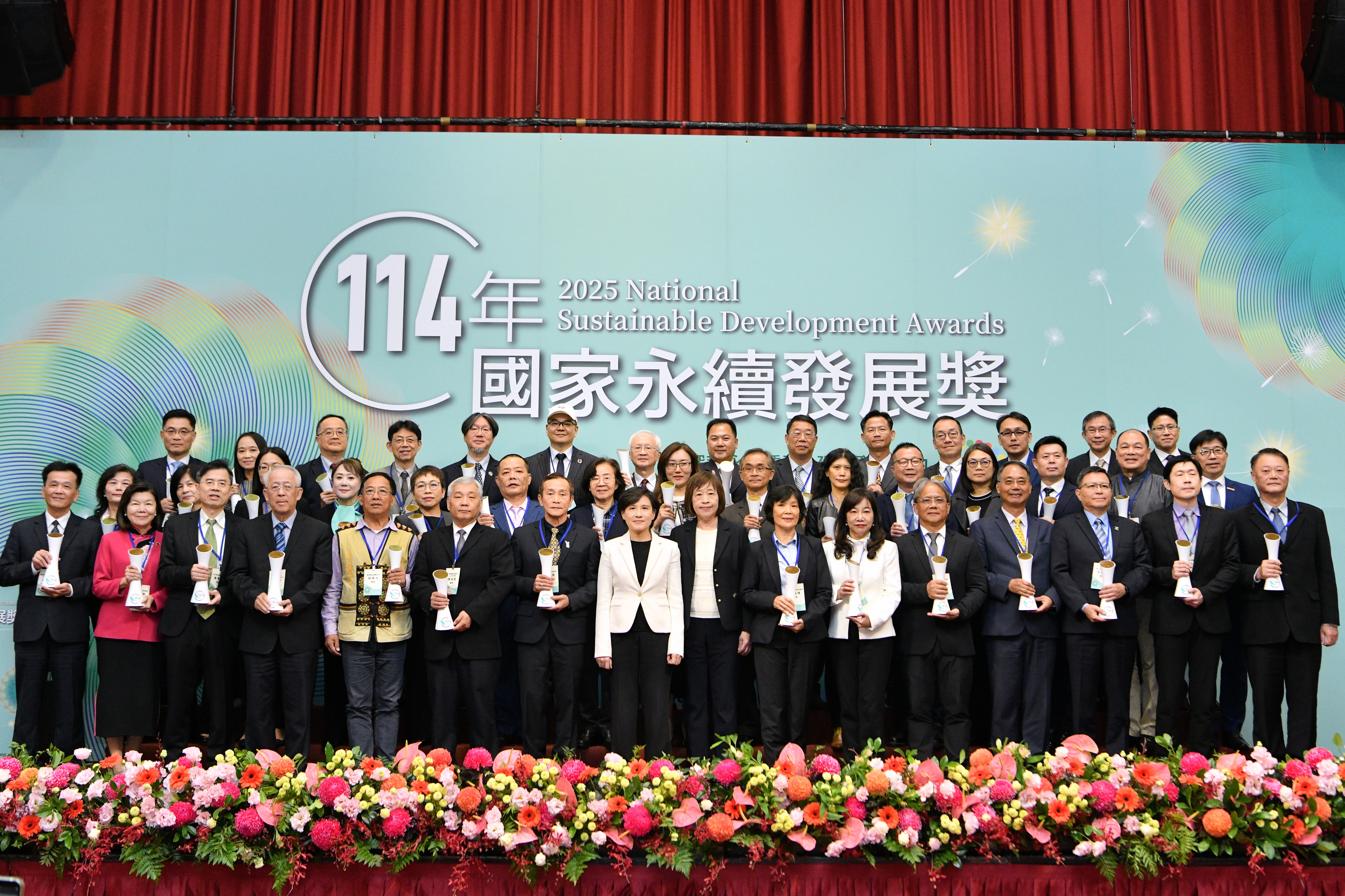 鄭副院長表示,今(2025)年43個獲獎單位與12個入選獎名單,是國家創新永續競爭力的縮影,包括將SDGs納入校務策略規劃的大學校院;積極推動綠色低碳供應鏈的大型企業;持續推動循環經濟的中小企業;推動轉型金融,支持客戶實踐永續發展的金融機構;積極推動低碳飲食與生態復育的宗教團體;以及在公共工程中融入環境保護與節能減碳理念的政府機關等。這些實踐都相當重要,具有示範效果,非常感謝大家的努力。