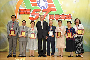 今天是中國青年救國團成立57週年,救國團在台北市劍潭海外青年活動中心舉行慶祝頒獎活動,其中服務救國團長達40餘年的雲林縣土庫高齡91歲的駱雲從醫師及幼獅合唱團白玉光老師等7人,由吳院長分別頒發終身奉獻獎及團務貢獻獎加以表揚。