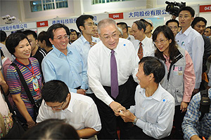 吳院長隨後參觀此次參與北市、北縣、基隆、宜蘭地區就業博覽會的艾笛森光電公司,聽取該公司有關業務及參與「立即上工」計畫的簡報。吳院長表示,艾笛森公司生產高功率LED產品,符合政府推動節能減碳產業政策,並且響應就業博覽會活動、超額晉用身心障礙人士,幫助政府提振景氣、創造就業機會,可為民間企業的模範。