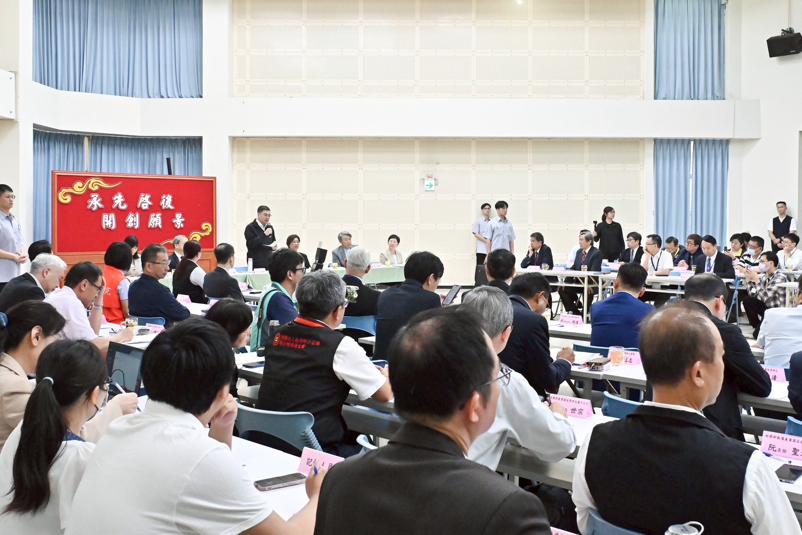 包括總統府賴博司國策顧問、行政院龔明鑫秘書長、李慧芝發言人、經濟部郭智輝部長、行政院中部聯合服務中心莊競程執行長、吳音寧副執行長、陳錦倫副執行長、陳秀寳立委、陳素月立委、黃秀芳立委、謝衣鳯立委、彰化縣王惠美縣長及中部地區重要產業代表均出席今日座談會。