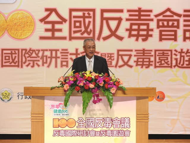 吳院長指出,自民國80年以來,美國國務院於全球毒品轉運調查報告中,有11年將我國從名單中除名,這代表我國反毒工作有一定進展,但是毒品泛濫依然是我國社會非常大的隱憂,希望各部會、民間團體及校園都要全力以赴,進行各項宣傳教育及查緝的基礎工作,讓國人向毒品說不,將所有走私、販賣及吸毒的罪行加以緝捕取締。吳院長說,我們也要幫助不幸染上毒癮的國人,包括採用美沙冬等戒毒療法,讓他們從痛苦的深淵當中得到社會的關心及幫助,找到自新之路。