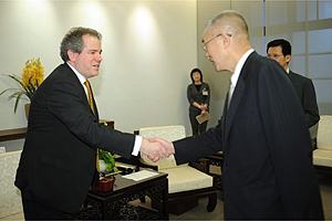 行政院長吳敦義今(27)日接見歐洲議會友台小組主席塔諾克(Mr. Charles Tannock)一行表示,從政者最高的理想就是能以和平手段,創造民眾最大福祉,而歐洲議會結合27國100多個政黨,是實踐這理想的典範。