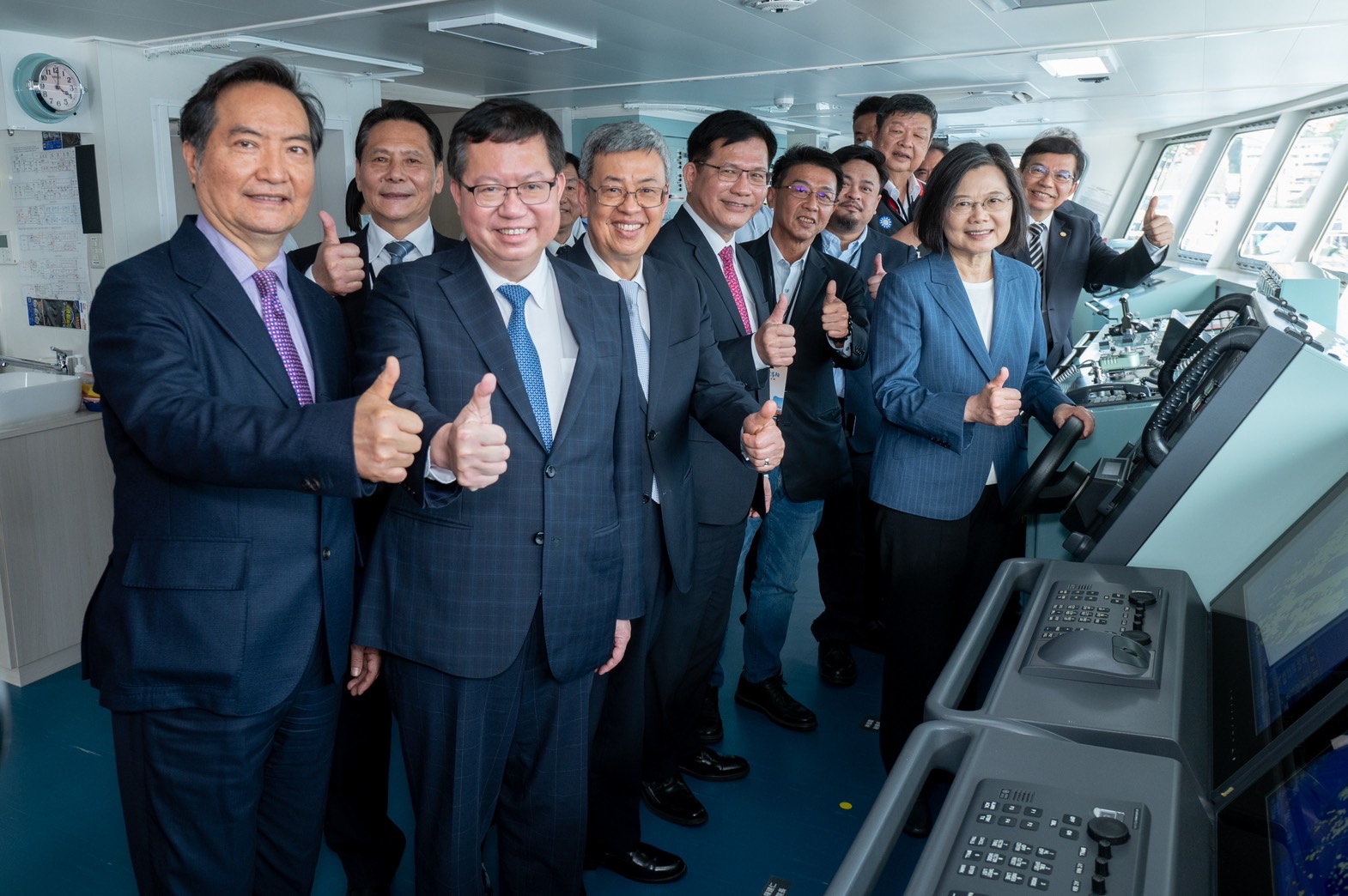今日首航典禮在「長笛姐姐」熱情澎湃的樂聲中熱鬧開場,蔡總統、陳院長及鄭文燦副院長等貴賓首先聽取交通部航港局葉協隆局長簡報「新臺馬輪購建計畫」;致詞結束後,院長及交通部王國材部長在臺上見證交船儀式,並由總統致贈「平安瓶」予新臺馬輪陳生財船長,隨後貴賓們一同進行剪綵儀式及合影。剪綵結束後,總統及院長等一行人由葉局長、全港通航業股份有限公司蔡宗勳總經理及陳船長共同導覽,登上新臺馬輪參觀餐廳、座位艙區及臥舖艙區,並在駕駛艙合影,為今日活動留下珍貴畫面。