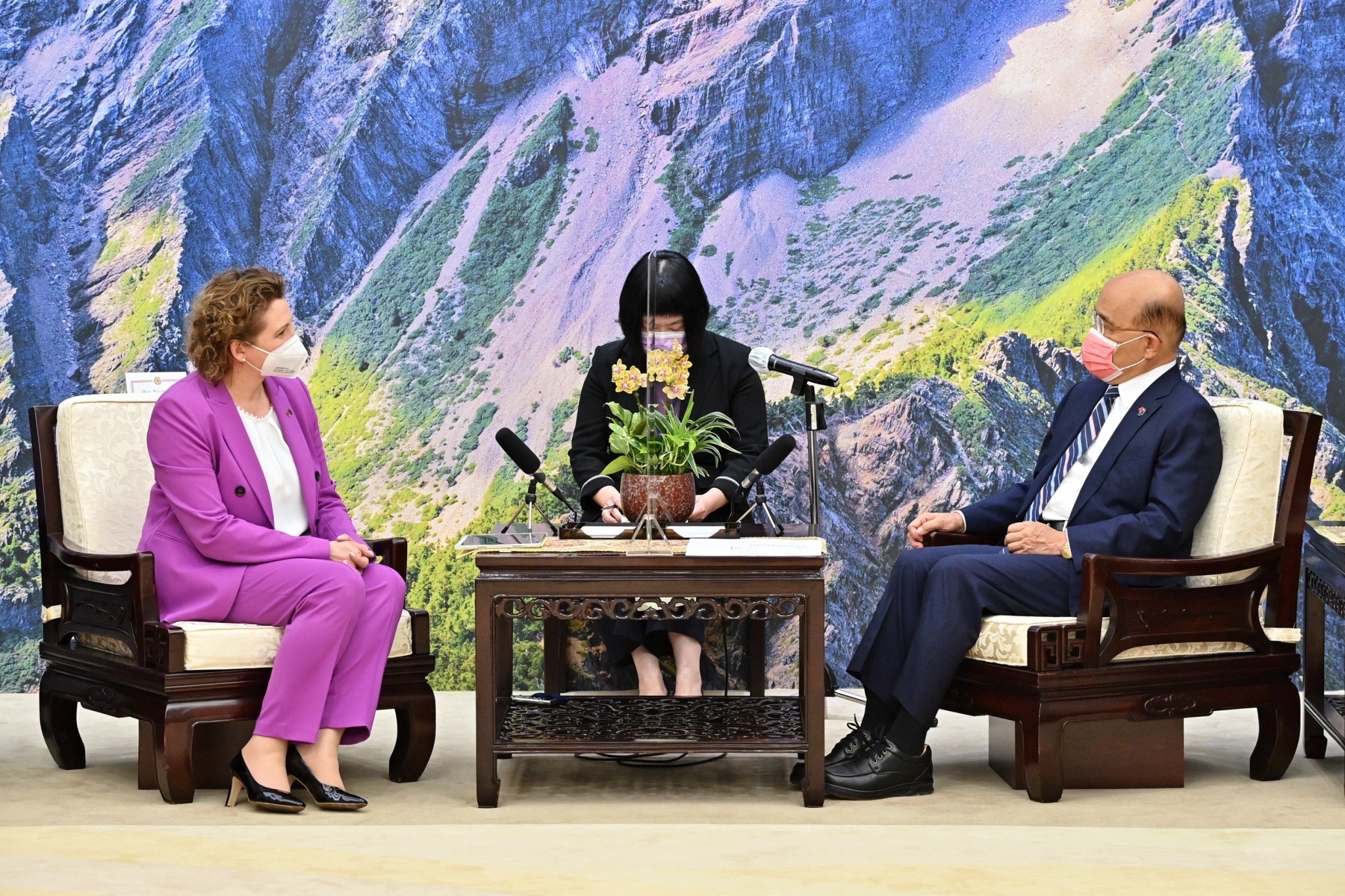 談及臺、歐盟雙邊貿易,蘇院長表示,臺、歐盟是非常重要的貿易夥伴,歐盟是臺灣第5大貿易夥伴,去年雙邊貿易額較前(2020)年成長32.45%,而臺灣也是歐盟在亞洲第5大貿易夥伴,雙方關係密切,並會在彼此有需要時相互幫助,例如臺灣去年COVID-19疫情嚴峻之際,歐洲許多國家即特別捐贈疫苗協助。