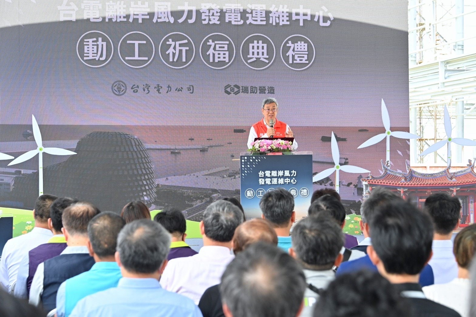 行政院長陳建仁今(13)日前往彰化縣出席「台電離岸風力發電運維中心動工祈福典禮」時表示,該中心是一座「淨零建築」,預計明(2024)年底完工後,將可為離岸風機提供管理及維護服務;另外,政府在彰化漁港投入近14億元的前瞻建設經費,設置10席運維船舶停靠的空間,讓地方能夠擁有一座兼具漁業、綠能、休閒功能的多元服務港,不僅為地方帶來繁榮,也為國家帶來能源。
