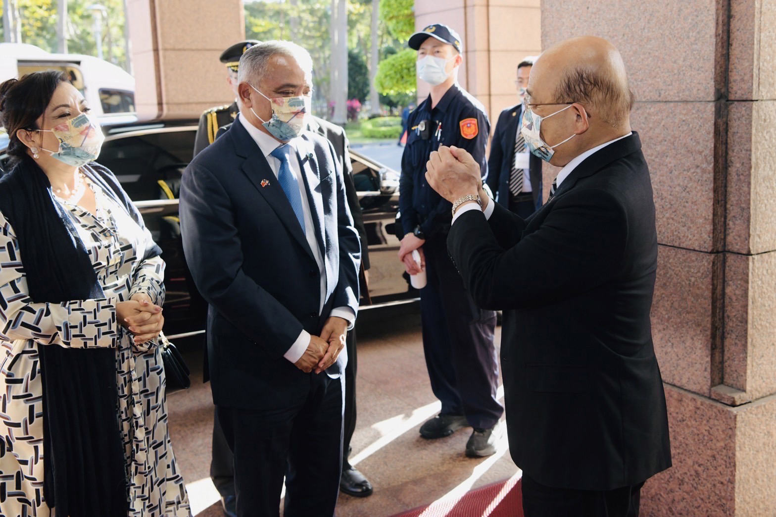 行政院長蘇貞昌今(9)日會晤貝里斯總理布里仙紐(John Briceño)伉儷一行,代表我國政府與人民誠摯歡迎訪賓到訪。蘇院長表示,臺灣及貝里斯同為民主、自由、法治的國家,兩國不僅常年在各領域互惠合作,友誼堅實,布里仙紐總理亦多次在國際場合上為臺灣發聲,並大力支持臺灣參與國際組織與活動。在全世界受疫情衝擊下,臺灣人民不僅能正常生活,經濟發展等各方面亦持續運作,盼訪團一行將臺灣防疫經驗傳遞國際社會,讓臺灣對世界有所貢獻及幫助。