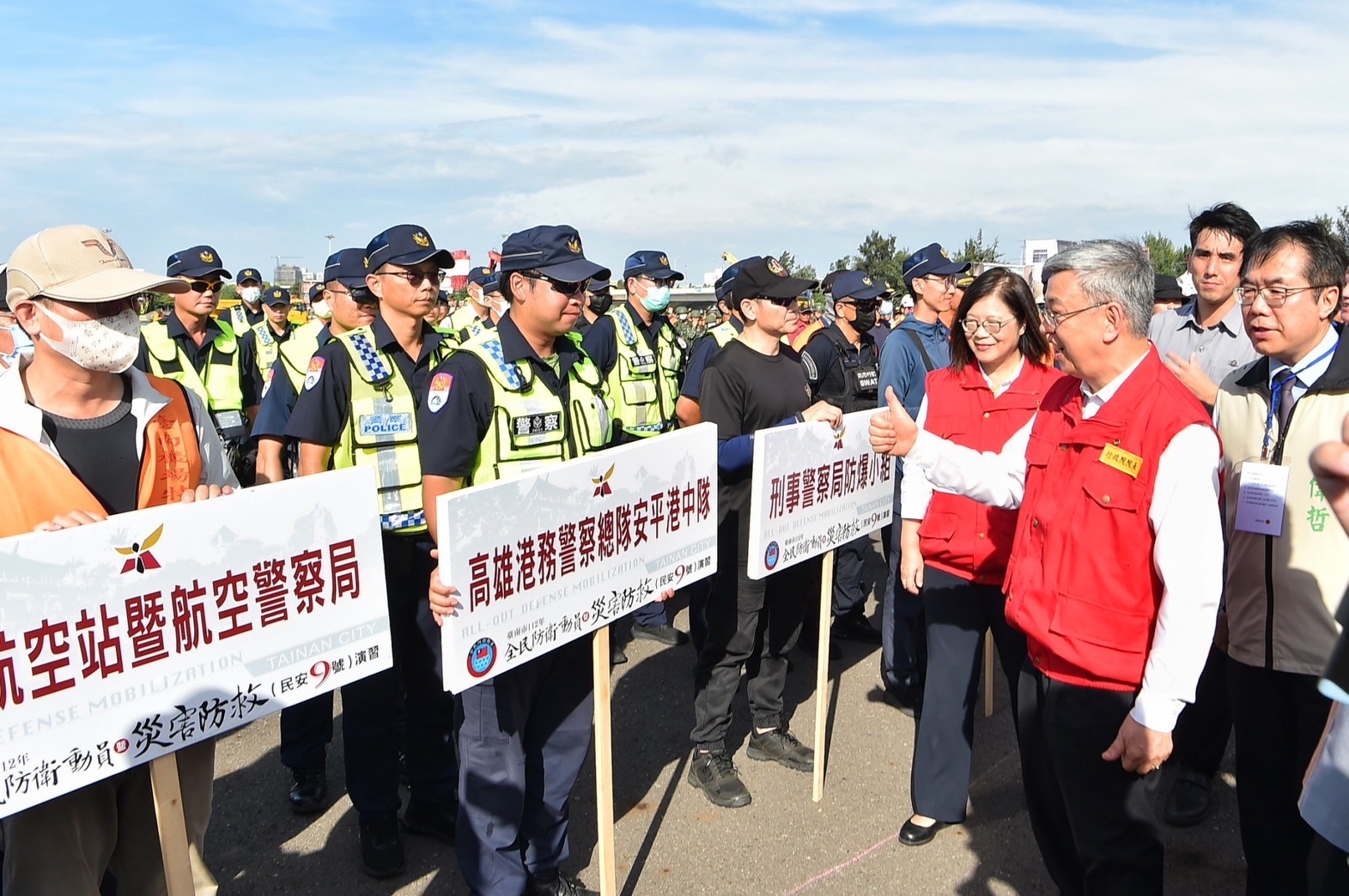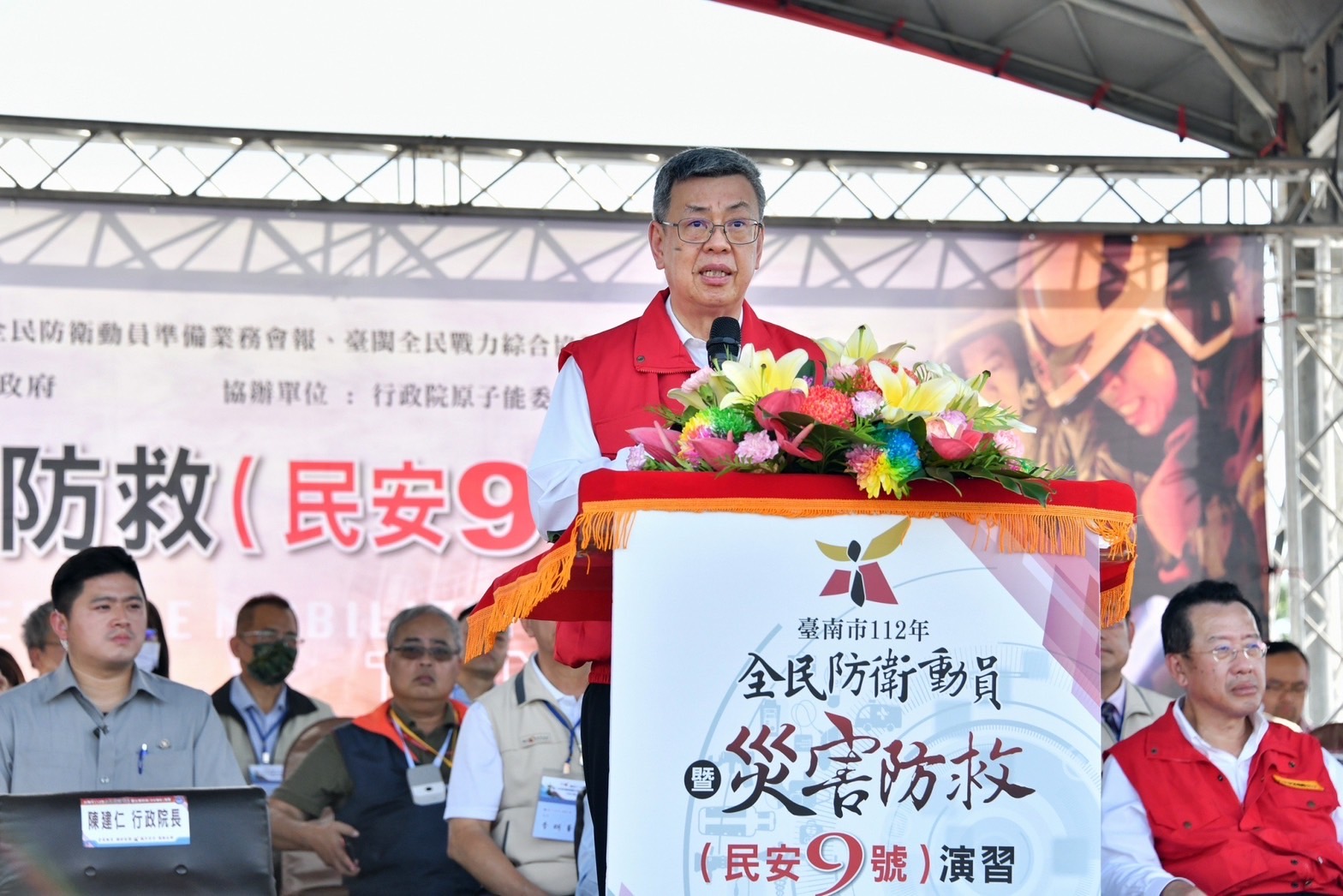 行政院長陳建仁今(25)日前往臺南市安平港碼頭出席「112年全民防衛動員暨災害防救(民安9號)」演習時表示,今日演練內容不但包含港內平時可能面臨的相關災害風險種類,更納入戰時境況演練,並由地方政府擔任所轄指揮官,調度地方救災能量,提升國家整體動員能力,他要感謝所有參演單位與同仁連日辛勞。臺灣已在災害防救上取得穩固的基礎,相信在軍、公、民三方共同協力合作,社會各界團結一心之下,定能確保任何外力皆無法動搖我國保衛家園的民心士氣,並向國際社會展現全民防衛臺灣的決心。