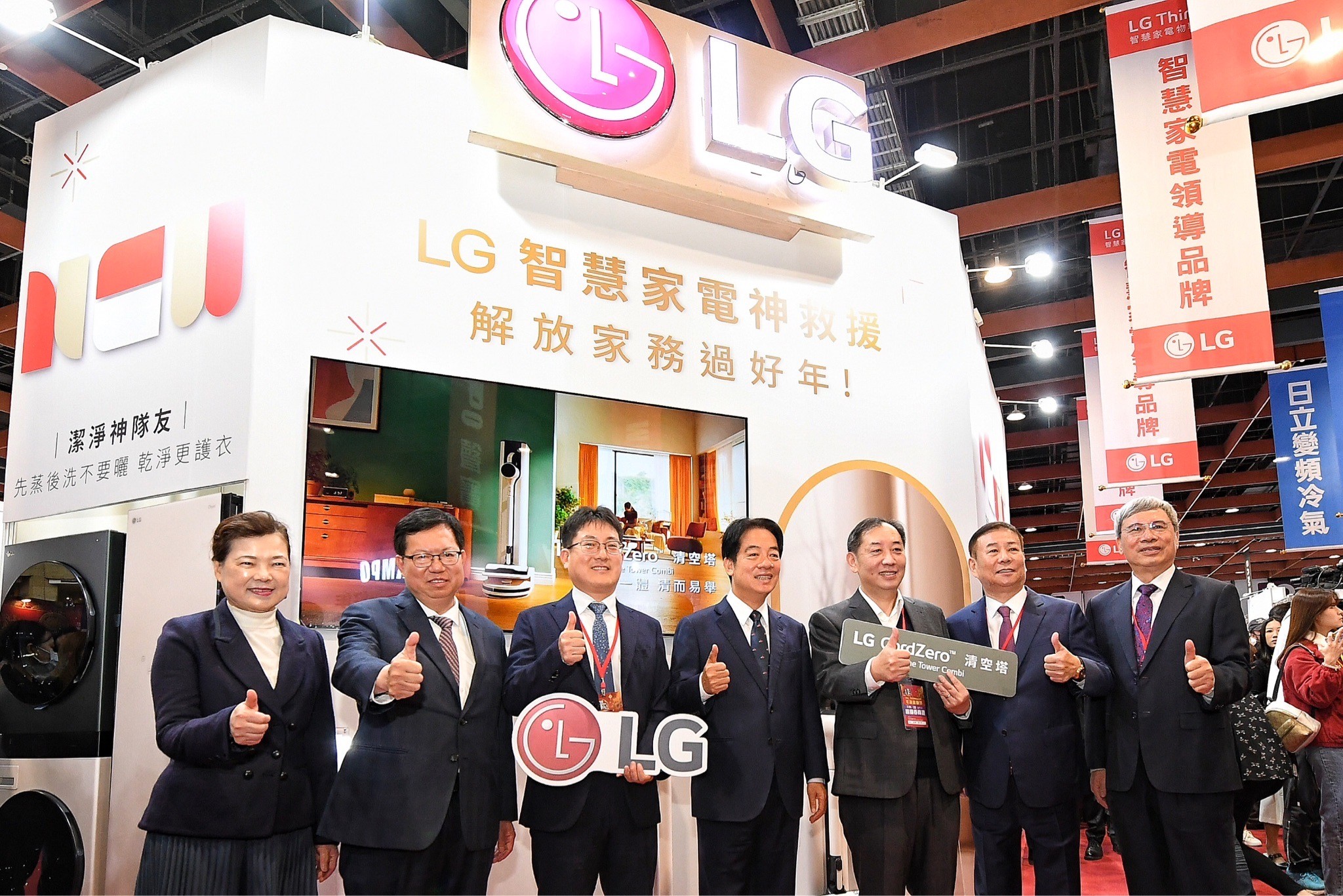 隨後,鄭副院長陪同賴副總統逐一參觀凱馳(Kärcher)、三星電子(SAMSUNG)、索尼(SONY)、三菱電機、夏普(SHARP)、飛利浦(PHILIPS)、日立家電、日立空調、LG、國際(Panasonic)、聲寶(SAMPO)、禾聯(HERAN)及金嗓等13個參展攤位,並觀看廠商現場示範大容量冰箱的操作,賴副總統也應廠商邀請,實際操作吸塵器,現場氣氛熱絡。