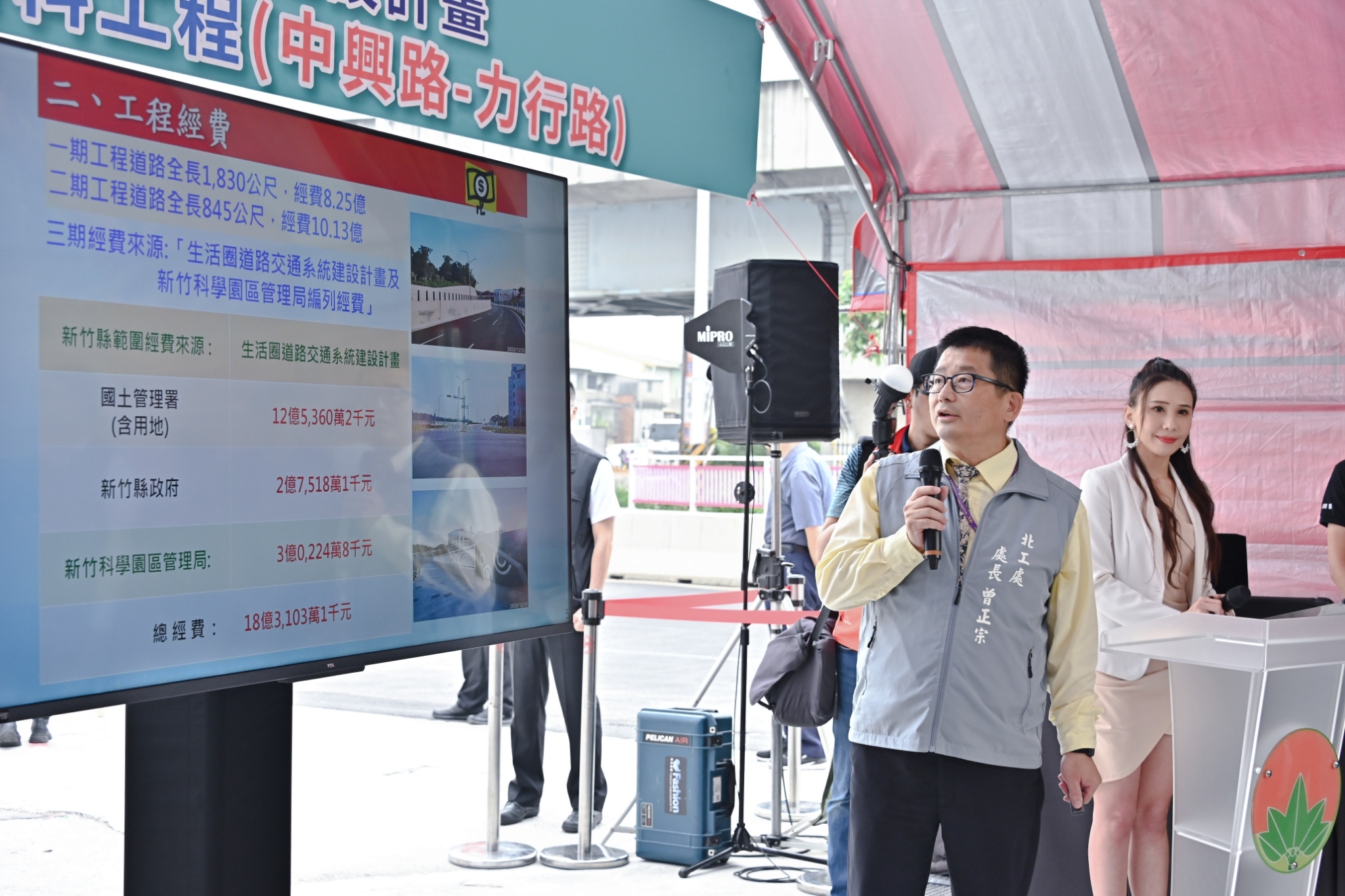曾分署長簡報時指出,為紓解國1竹北及新竹交流道路段尖峰時間壅塞問題,因此新竹縣政府提出改善建設計畫,由中央政府「生活圈道路交通系統建設計畫」,給予總經費18.31億元的經費支持,共同推動這項改善工程。該工程北起新竹縣中興路,往南跨越柯湖路及柯子湖溪,銜接新竹科學園區力行路,全長約1.3公里,並串聯新竹地區自行車道路網。該工程已於2023年10月13日完工,通車後竹北至竹科經由高鐵橋下道路,約可節省15-20分鐘車程,進一步健全新竹縣市整體路網,並帶動區域產業發展。