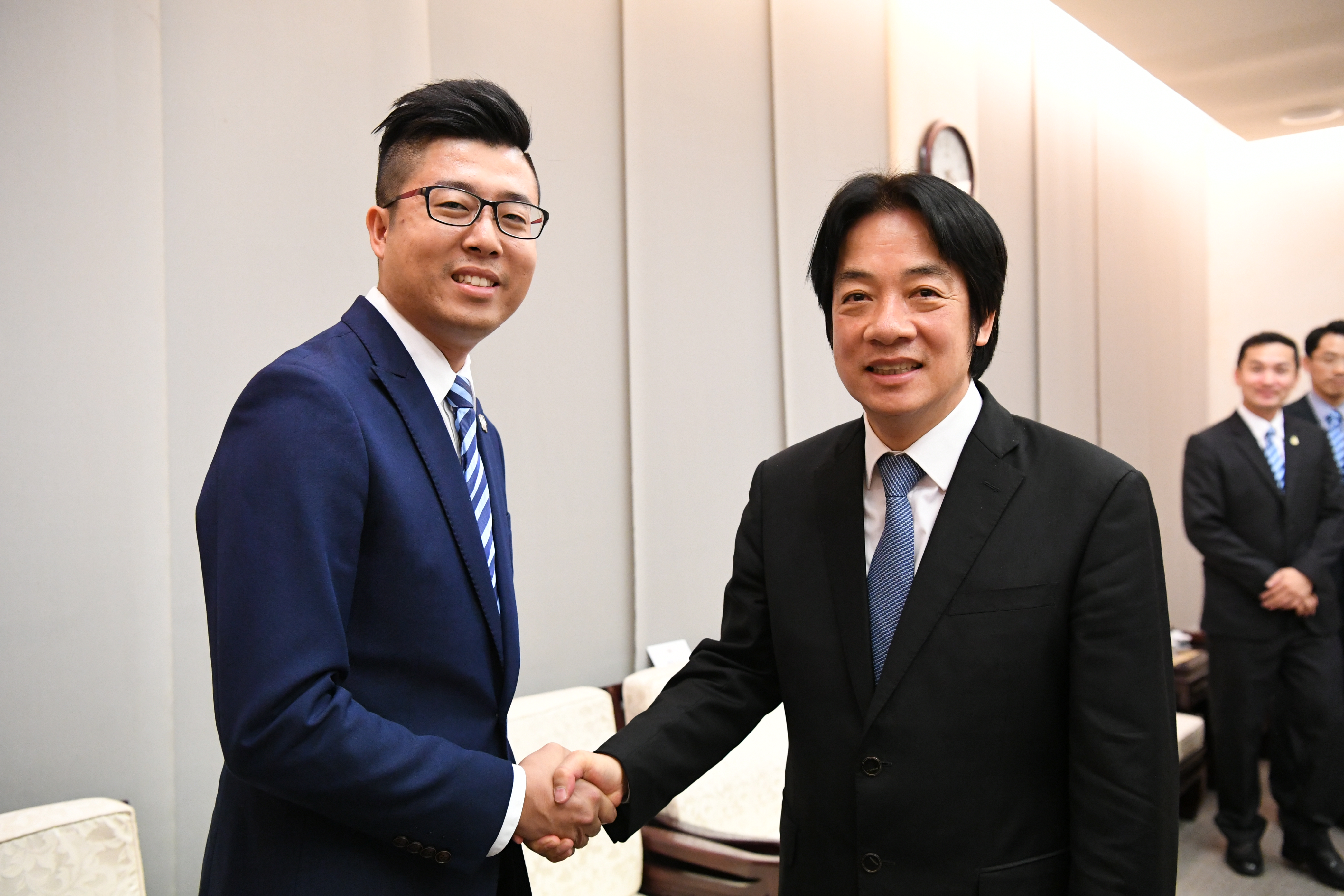 行政院長賴清德今(25)日接見國際青年商會中華民國總會「第56屆十大傑出青年」一行時,恭賀當選人獲得青年的最高榮譽,並希望身為社會標竿及青年楷模的得獎者在各領域持續努力,啟發更多年輕人看見未來的方向,一起面對國際的競爭與挑戰。