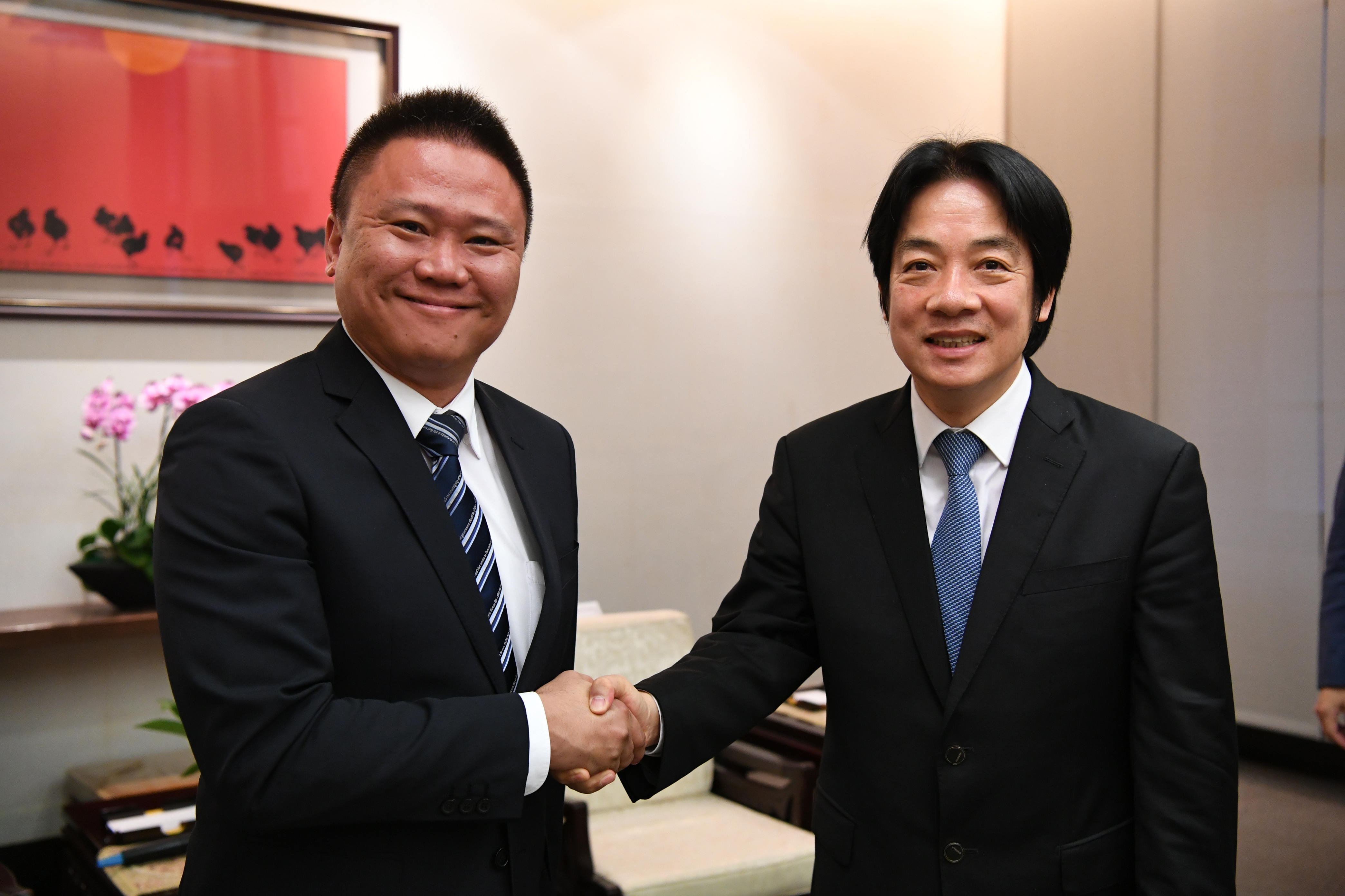 賴院長表示,美國副總統彭斯(Mike Pence)最近到智庫「哈德遜研究所」(HudsonInstitute)發表的演講中,批評中國多年來的作為,並肯定台灣民主、自由及重視人權的精神。另根據「世界經濟論壇」(World Economic Forum,WEF)評比140個國家經濟競爭力的報告,我國排名第13,在亞太地區排名第4;在「創新能力」中,台灣排名全球第4;而我國的總體經濟情形更獲得全球第1。