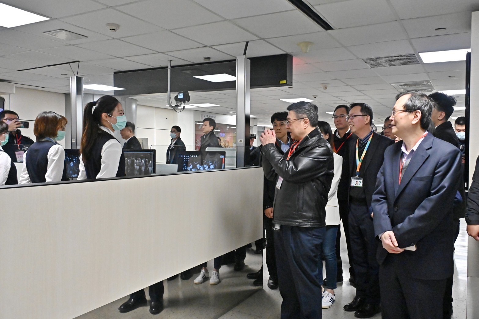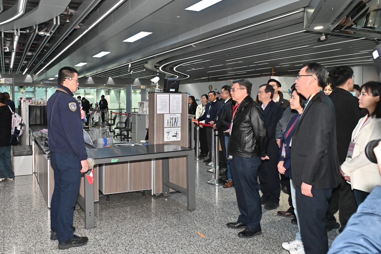 卓院長指出,上週國人在桃園機場排隊等候出關安檢時間過久,因此今日特別前來視察,了解是否已因應國人出國安檢需求進行調整,讓國人進出國門更順利,同時也為機場同仁加油打氣。