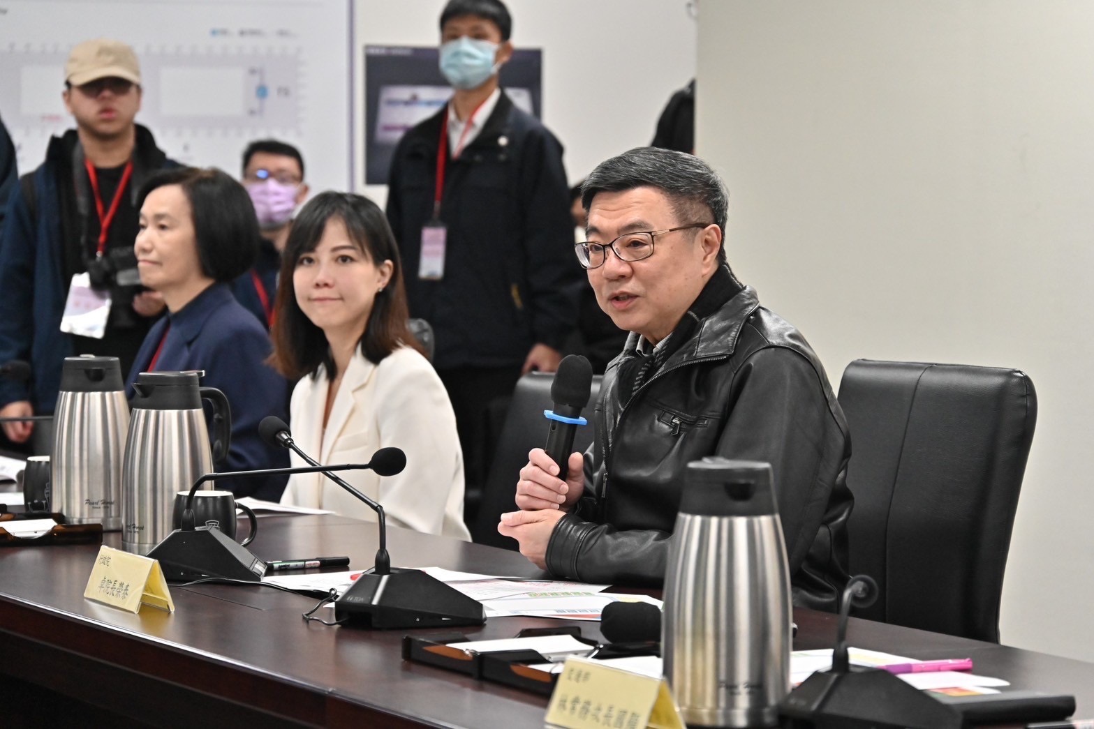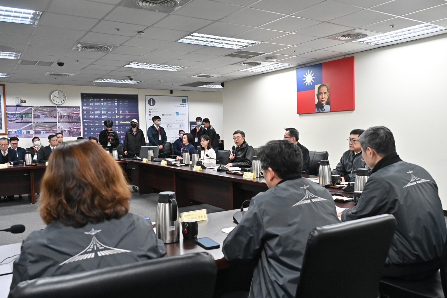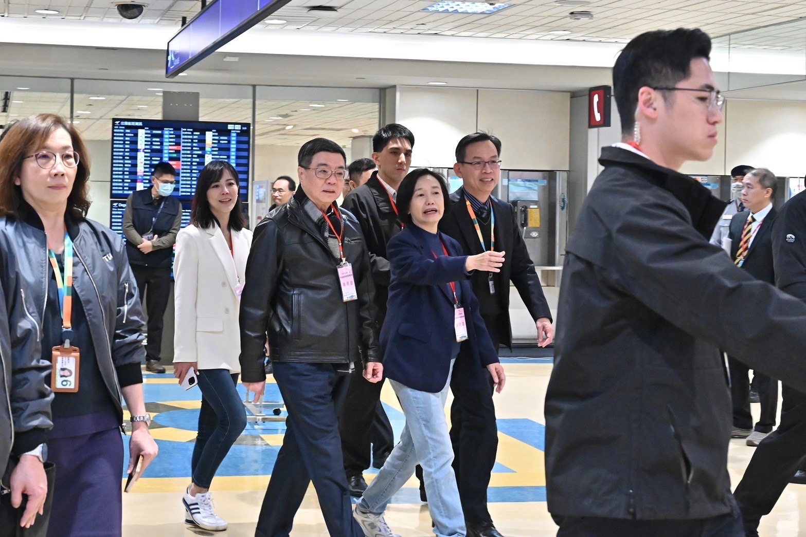 此行,卓院長在李慧芝發言人、交通部林國顯次長、農業部杜文珍次長、衛福部疾管署莊人祥署長、農業部動植物防疫檢疫署邱垂章署長、財政部關務署彭英偉署長、內政部移民署鐘景琨署長、警政署航警局邱文亮局長、交通部航政司韓振華司長、桃園機場公司楊偉甫董事長等陪同下,聽取桃園機場公司范孝倫總經理春節疏運整備簡報。隨後,卓院長依序前往桃機3樓出境安檢區、2樓入境動植物檢疫區、證照查驗區及1樓入境紅綠線查驗區視察,聆聽春節疏運作業說明,並慰勉同仁辛勞。