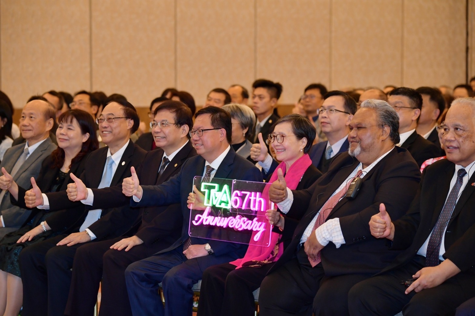 致詞結束後,鄭副院長與交通部王國材部長、交通部觀光署周永暉署長、台灣觀光協會葉菊蘭會長、各國駐臺使節、旅遊業者、觀光相關公、協會,以及產官學界等近300位代表及貴賓進行大合影,為本次慶祝活動揭開序幕,場面熱絡。