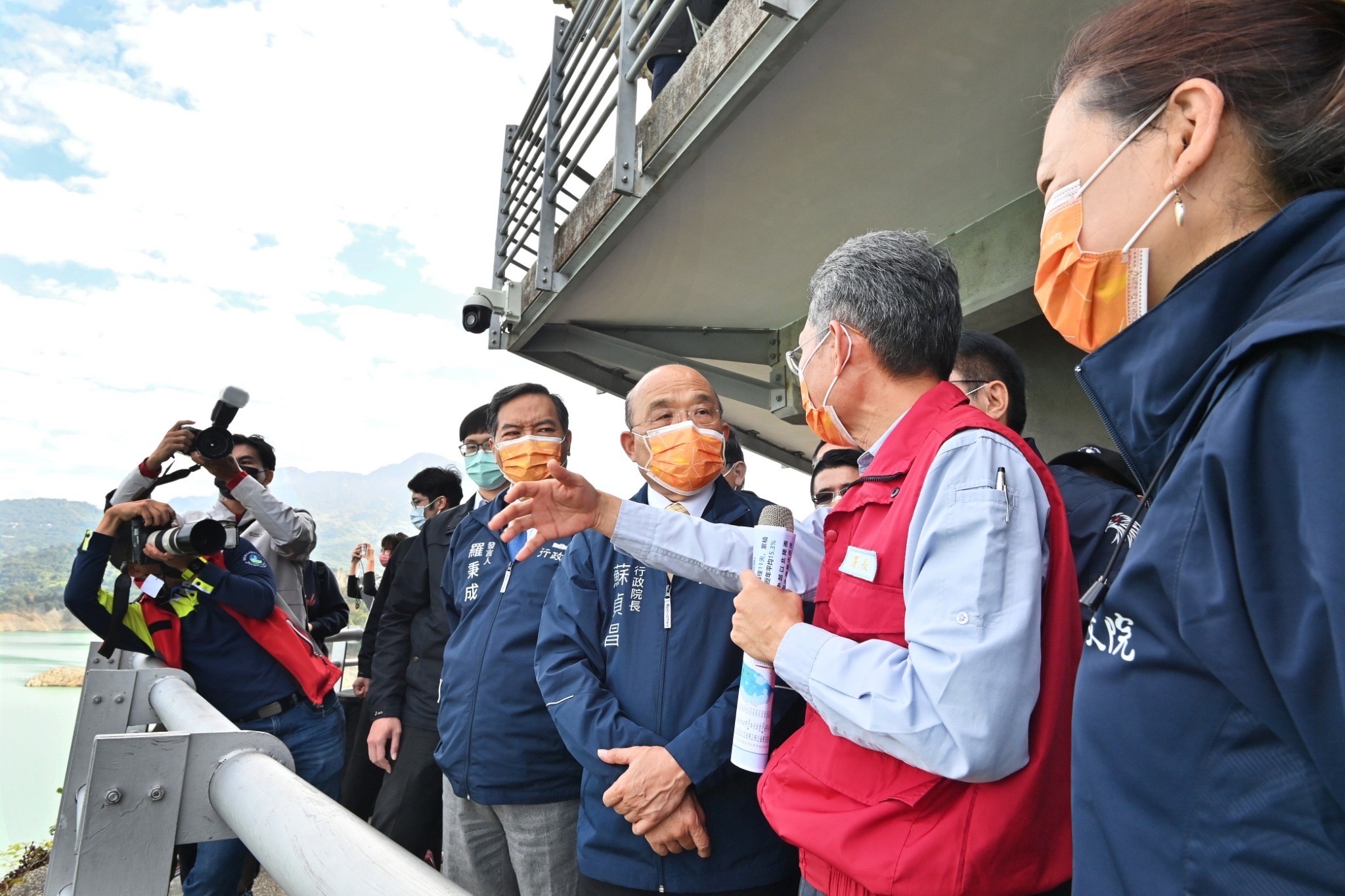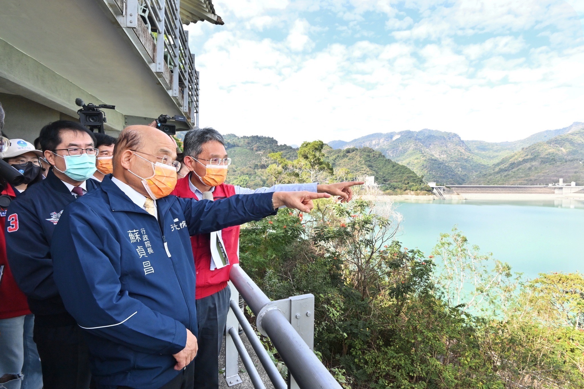 此行,蘇院長首先聽取經濟部水利署賴建信署長簡報曾文水庫水情狀況,並於致詞結束後進行現場視察,關切節水、防旱作業整備情形,並指示持續加強水庫清淤工作,強化南部供水韌性。蘇院長也為經濟部水利署南區水資源局工作人員加油打氣,並合影留念。