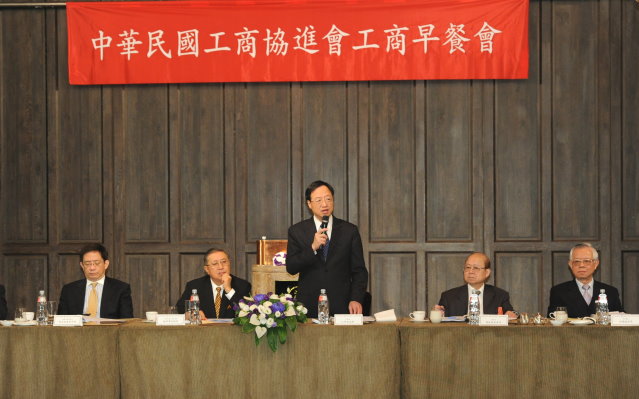 行政院長江宜樺今(16)日出席「中華民國工商協進會工商早餐會」時表示,面對國內外情勢挑戰,他期勉內閣團隊堅定腳步,以振興經濟為首要工作,經濟成長的果實要能嘉惠廣大民眾,逐漸弭平社會貧富落差。