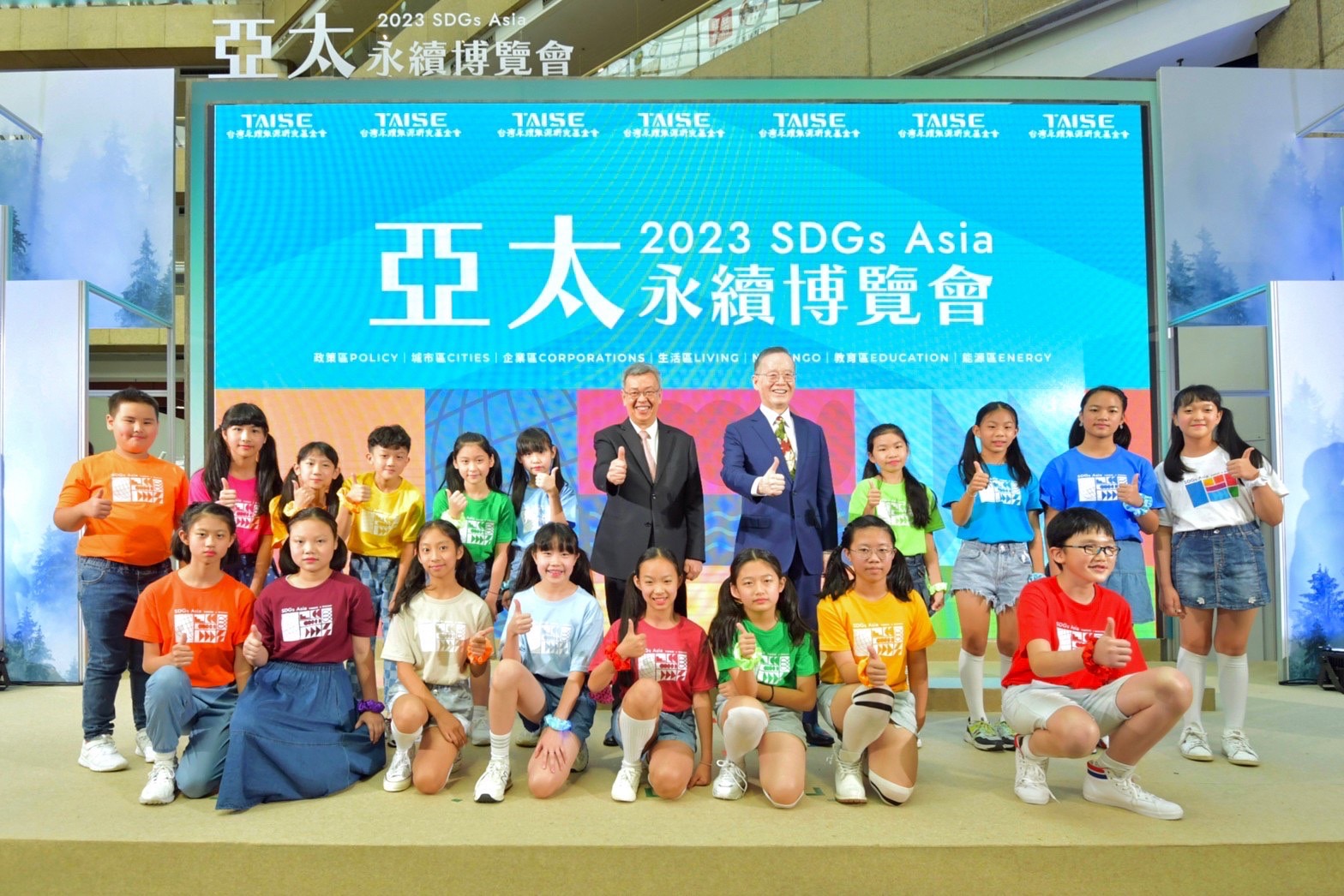 隨後,陳院長親自頒發獎座予20位「亞太暨台灣永續行動獎」獲獎企業代表,並與鄭文燦副院長、林子倫發言人、外交部吳釗燮部長、環保署張子敬署長、內政部花敬群次長、經濟部曾文生次長、簡又新無任所大使及我國友邦代表團等人於舞臺上手持SDGs標語手板比讚合影,為論壇揭開序幕。