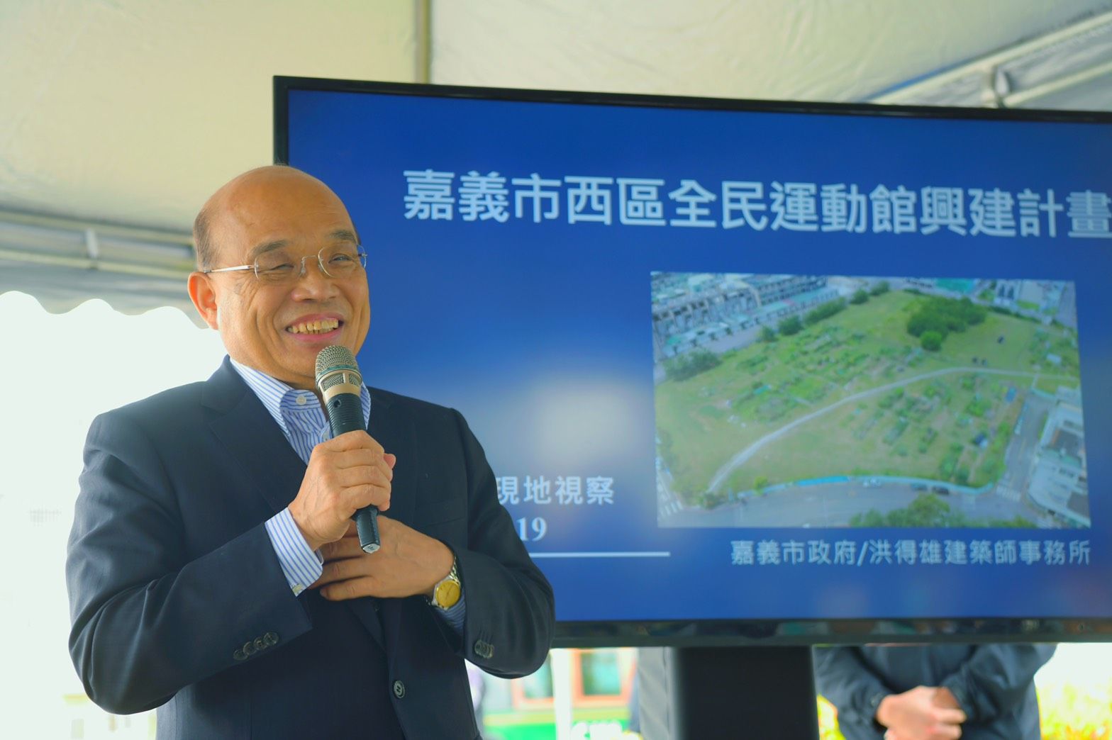 行政院長蘇貞昌今(19)日視察「嘉義市西區國民運動中心基地」時表示,嘉義市運動人口比例在全臺數一數二,可見嘉義市民非常注重運動及健康,為實現市民期待,支持本案納入前瞻計畫,並按比率給予經費協助。院長也請立法委員協助通過前瞻第三期預算,大家團結一心,讓臺灣在世界有一席之地。