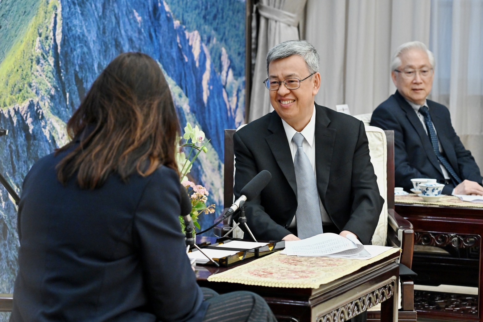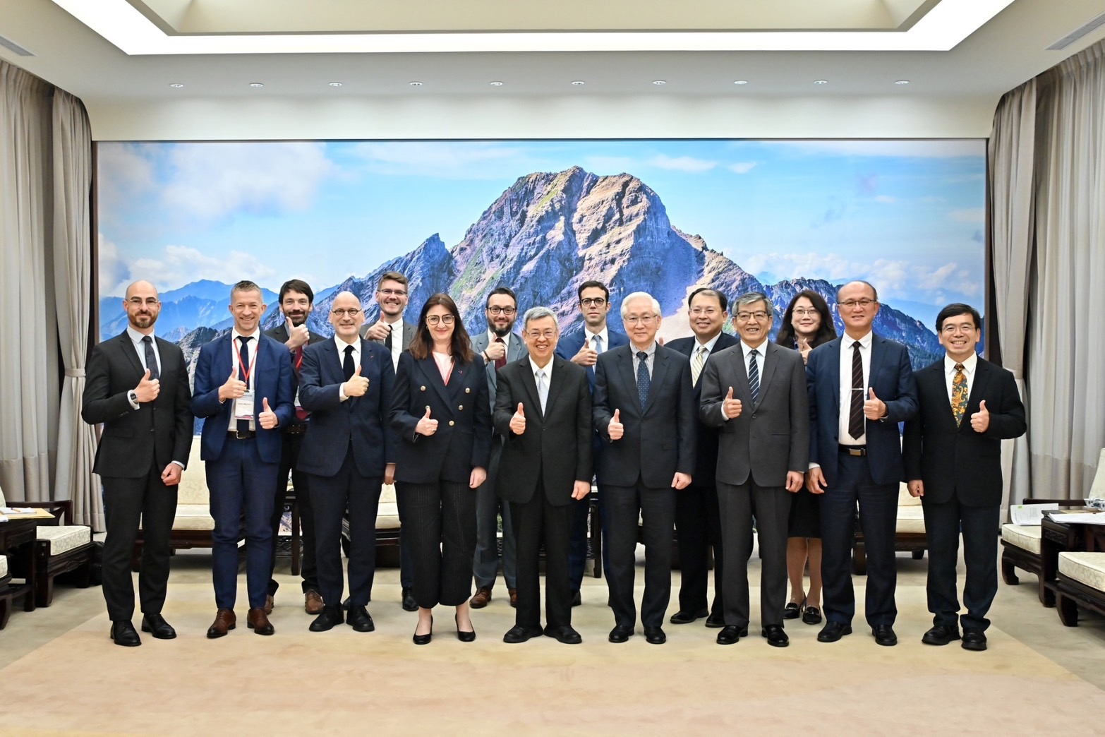 訪賓成員尚包括法國外交部佩侯(Mathieu Perrot)副處長、高等教育暨研究部樂拜耶(Maël Le Bail)副科長、國家科學研究院梅赫梅(Alain Mermet)處長、原子能暨替代性能源署蹦特(Jean-Christophe Bontè)副處長、國家健康與醫學研究院史特范(Olivier Steffen)國際合作主管、人文社科園區紮利歐(Pierre-Paul Zalio)主席等人,由行政院政務委員兼國科會吳政忠主委、法國在台協會龍燁主任陪同,前來行政院拜會陳院長,外交部謝武樵次長、教育部林騰蛟次長、數位發展部闕河鳴次長、海洋委員會洪文玲副主委等也在座。