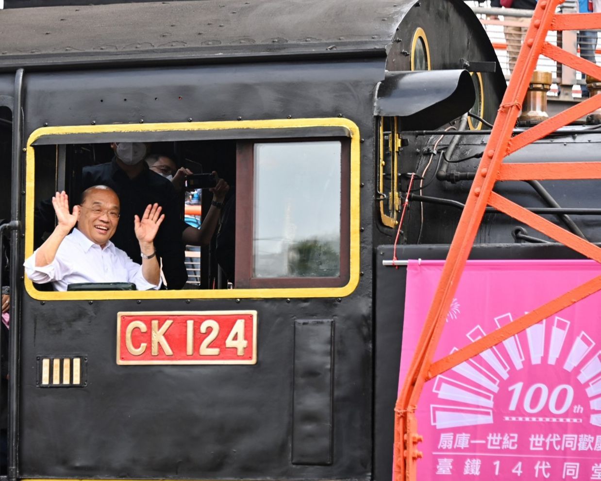 行政院長蘇貞昌今(4)日前往彰化市出席「扇形車庫啟用100週年慶祝活動」,並登上CK124號蒸汽火車副駕駛室親自體驗手拉汽笛,一圓兒時夢想。蘇院長表示,彰化是山海線交會的好地方,火車往來頻繁,因此當年需設置扇形車庫進行車輛調度及維修,目前也是東南亞唯一僅存的扇形車庫,感謝中央地方共同努力保存該國定古蹟。蘇院長也期勉臺鐵公司於公司化轉型後,能更活化運用各項資源,提升營運效能,並向優良民間企業學習,同時持續落實改革,以符合社會期待。