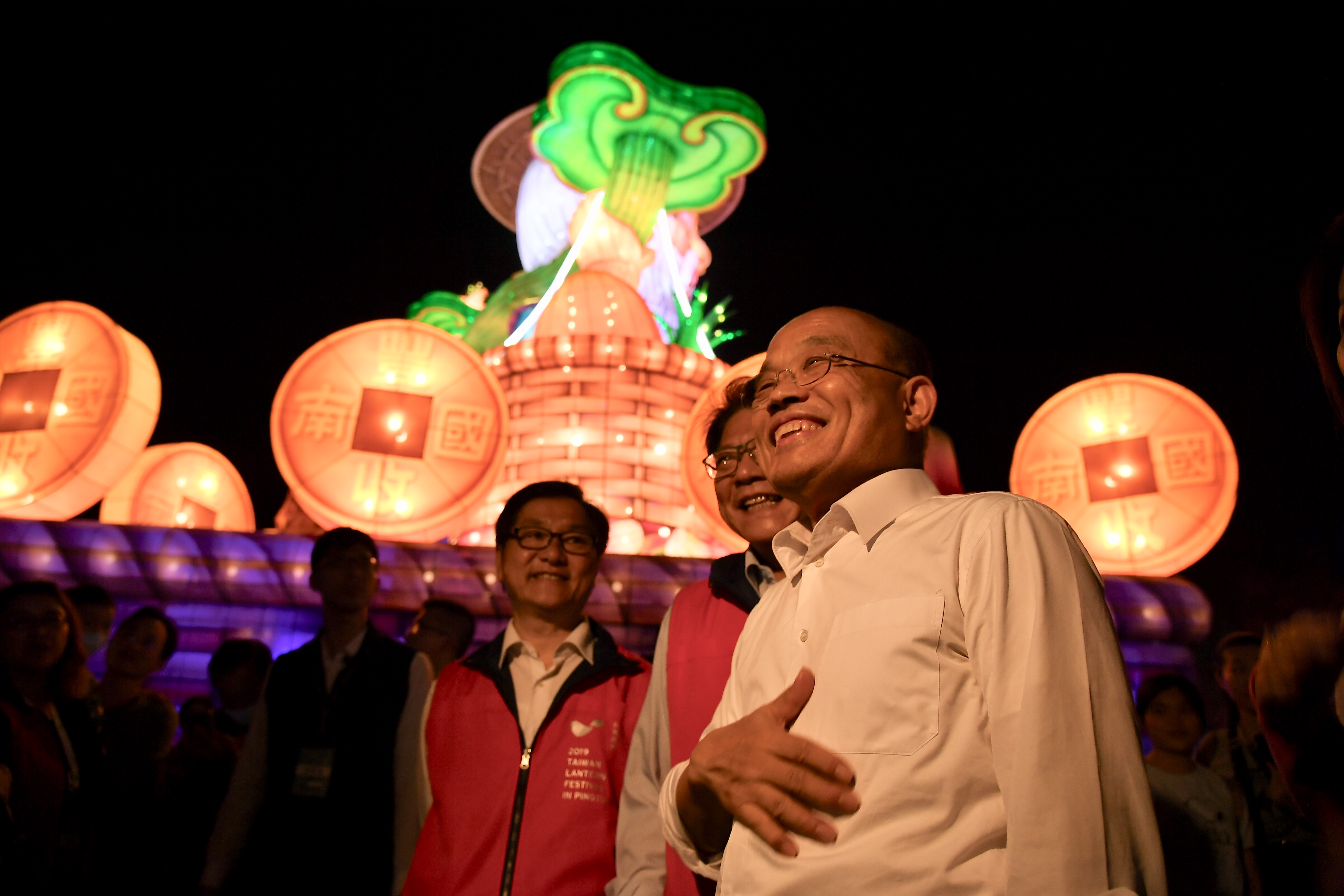 隨後,蘇院長前往東港東隆宮參拜祈福,祈求風調雨順、國泰民安、漁船滿載;稍晚則至大鵬灣主燈區參觀「2019台灣燈會」。