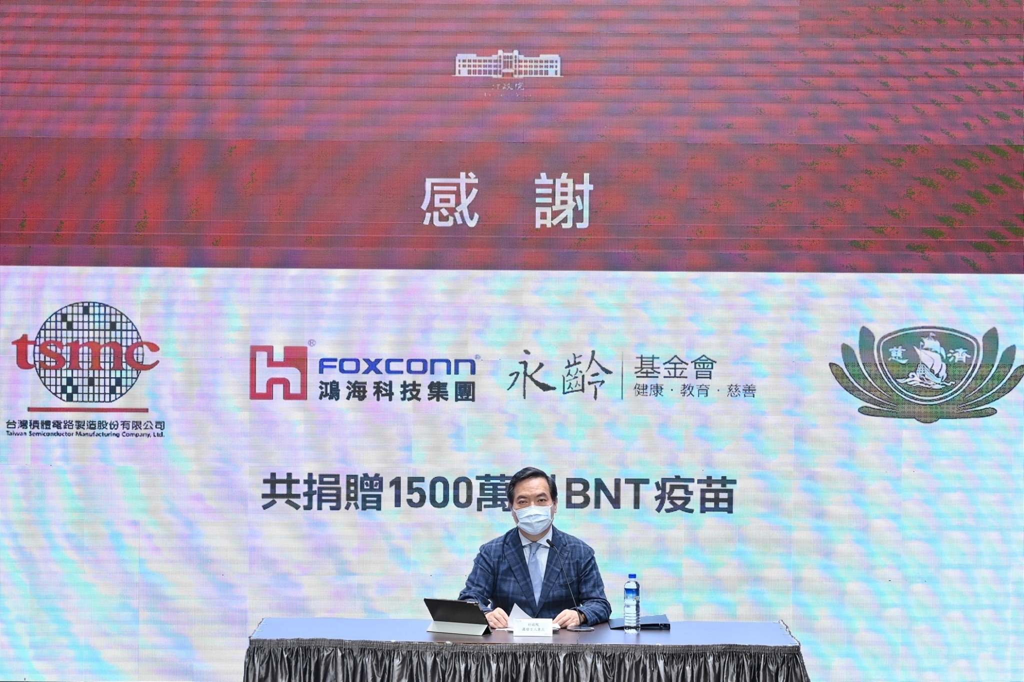 有關佛教慈濟慈善事業基金會捐贈BNT疫苗專案進度,行政院發言人羅秉成今(21)日表示,捐贈單位慈濟基金會於今日上午約八時左右,將備妥之相關契約等法律文件,遞送受捐贈單位衛福部疾管署審核,該署同仁立即完備相關行政程序後,於同日約十時許,由疾管署周志浩署長完成捐贈契約之簽署手續。特別要感謝證嚴上人的全力支持及慈濟慈善基金會的義行善舉,同時要感謝疾管署同仁及義務律師的辛勤付出,終於在公私協力合作下,順利達成這專案的階段性重大進展。