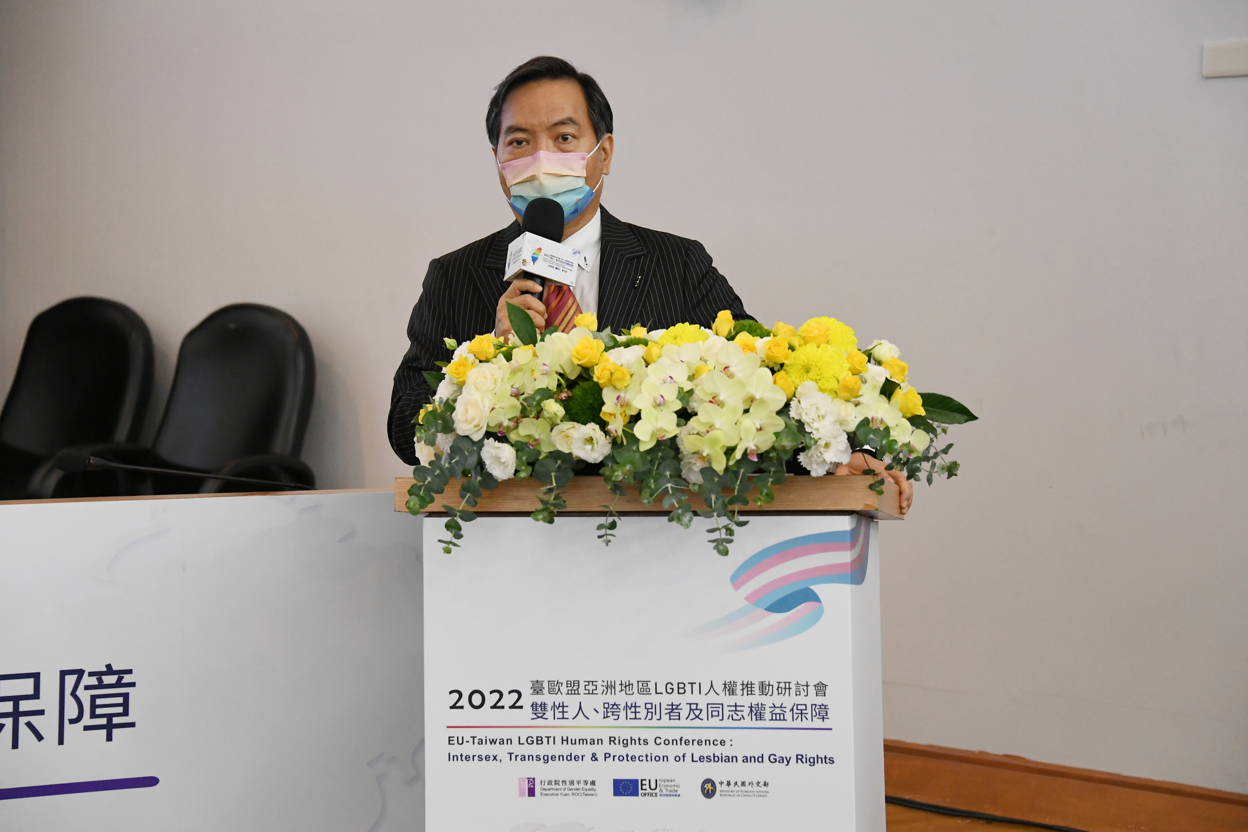 為促進亞洲及各國保障LGBTI(女同性戀、男同性戀、雙性戀、跨性別及雙性人等多元性別者)權益,「2022年臺歐盟亞洲地區LGBTI人權推動研討會-雙性人、跨性別者及同志權益保障」於今(27)日起一連2天在公務人力發展學院臺北院區舉行。行政院政務委員兼發言人羅秉成出席開幕式致詞時表示,本次研討會於2020年因疫情停辦,此次睽違3年後再度與歐洲經貿辦事處(EETO)合作,期待藉由不同國家參與者的經驗交流,持續深化LGBTI人權保障議題,並從中汲取各國經驗,與亞洲及各國攜手向前邁進。