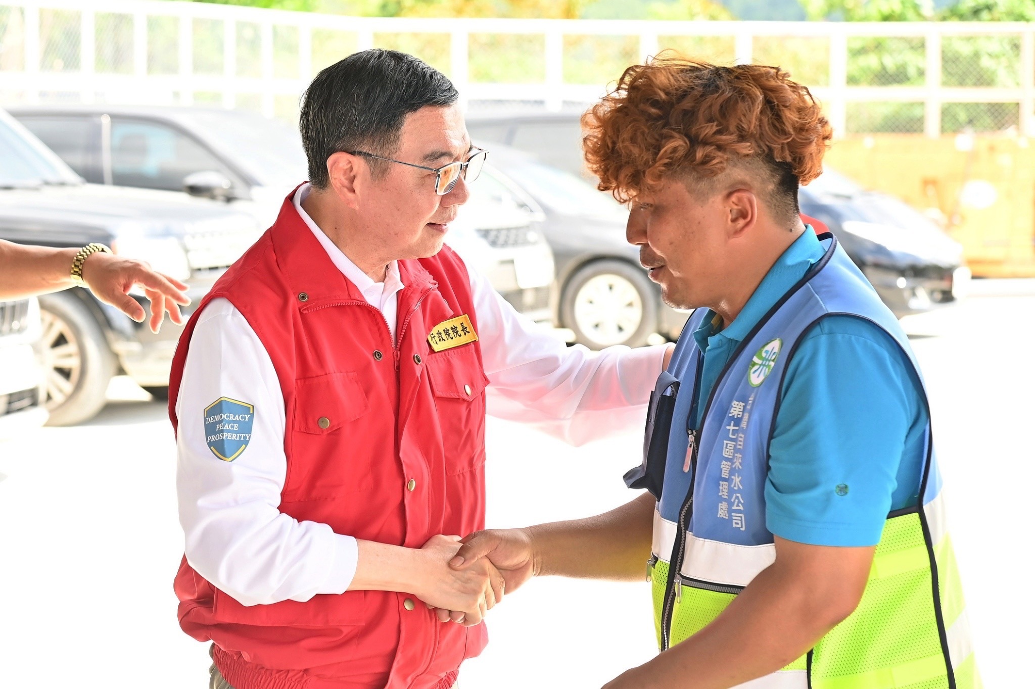 卓院長也感謝在場邱議瑩立委積極為地方爭取5,000噸配水池,在此次風災期間成功發揮作用,維持六龜淨水場穩定提供乾淨水源;同時也感謝台水公司盡心維護全國各地自來水水管,以及經濟部水利署持續開發地下水、伏流水等水源,透過全臺各地聯通管工程跨區調度水資源,並於颱風期間及時針對各水庫進行調節性放水等,使災害降至最低。卓院長也請地方政府與立法委員未來持續提供中央更多建言,中央會全力支持地方,回應民眾需求,讓民眾安心。致詞結束後,卓院長也頒發慰勉金嘉勉簡松瑞股長及葉峻銘技術士,並由台水公司美濃營運所辜琪媜主任代表受領。