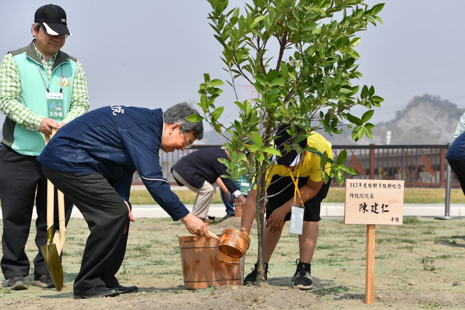 陳院長表示,很高興在春暖花開的季節,陪同蔡總統與在座貴賓,一同來此鳥語花香、風景優美的烏溪鳥嘴潭人工湖,一起種下臺灣原生種的珊瑚樹,尤其種樹是一項「十年樹木,百年樹人」的重要工作,今日種下的樹木,希望讓未來下一代都能夠享福。