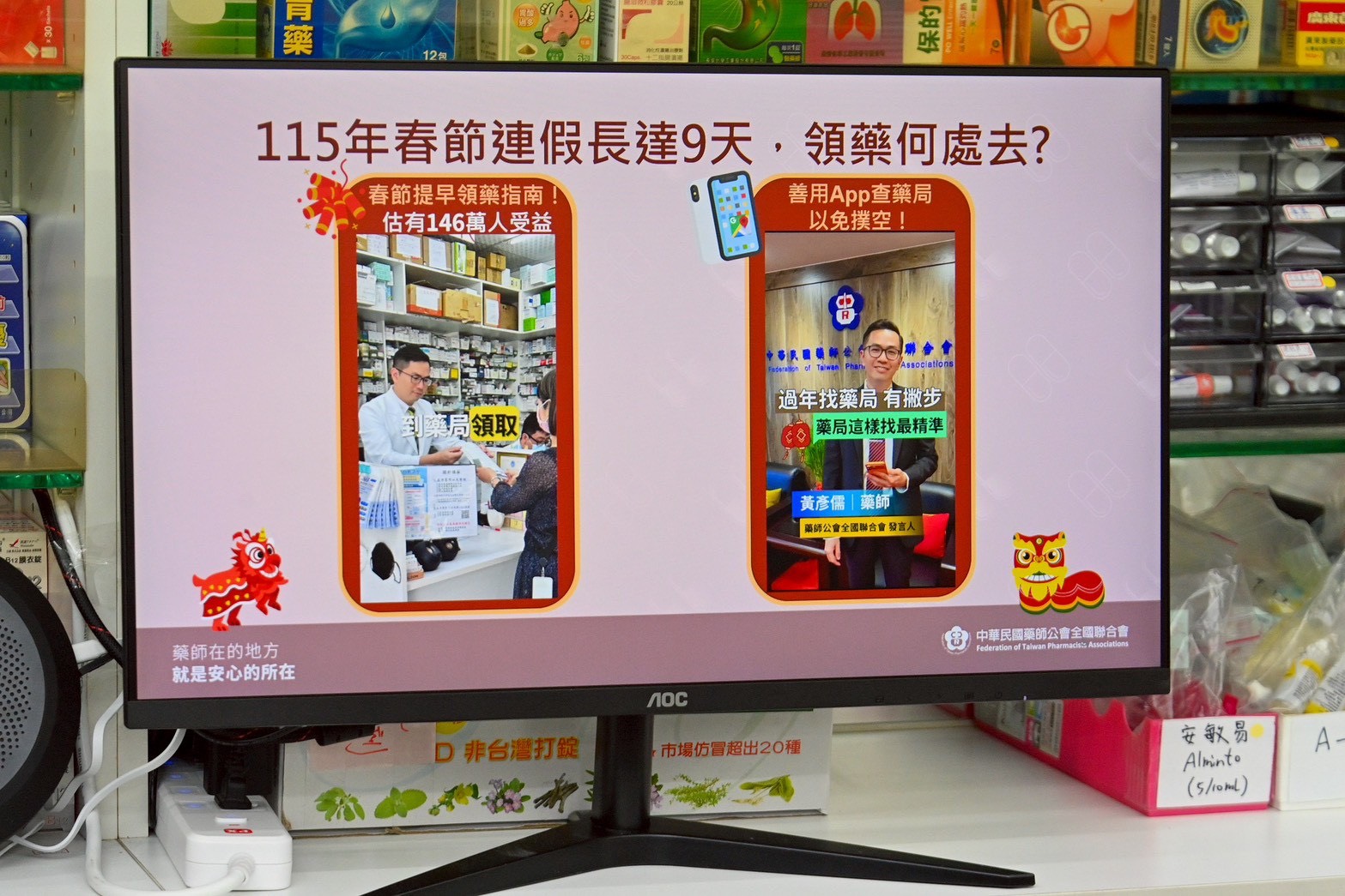 卓院長指出,春節期間全國藥局開診率相當高,9天連假平均開業率達49%,其中初一到初四,相較去(2025)年每天約增加10至18個百分點,增加家數約從800至1,400家不等,讓春節期間身體稍有不適的民眾可以安心獲取所需藥品。卓院長也鼓勵民眾春節期間能多到野外踏青、廟宇祈福,以及前往親朋好友家拜年,保持身心健康。