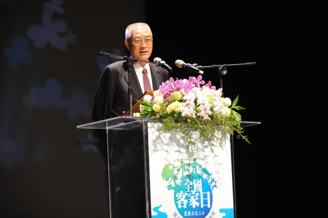 行政院長吳敦義今(19)日出席客家委員會主辦的「全國客家日藝文晚會」,他感謝全體國人過去兩年多來,同心協力克服許多全球性或環境上的衝擊,終於逐漸從谷底恢復台灣的活力,他期許民國一百年大家更加奮發努力,共同充實台灣的硬建設及軟實力,以迎接馬總統所提出的黃金十年。