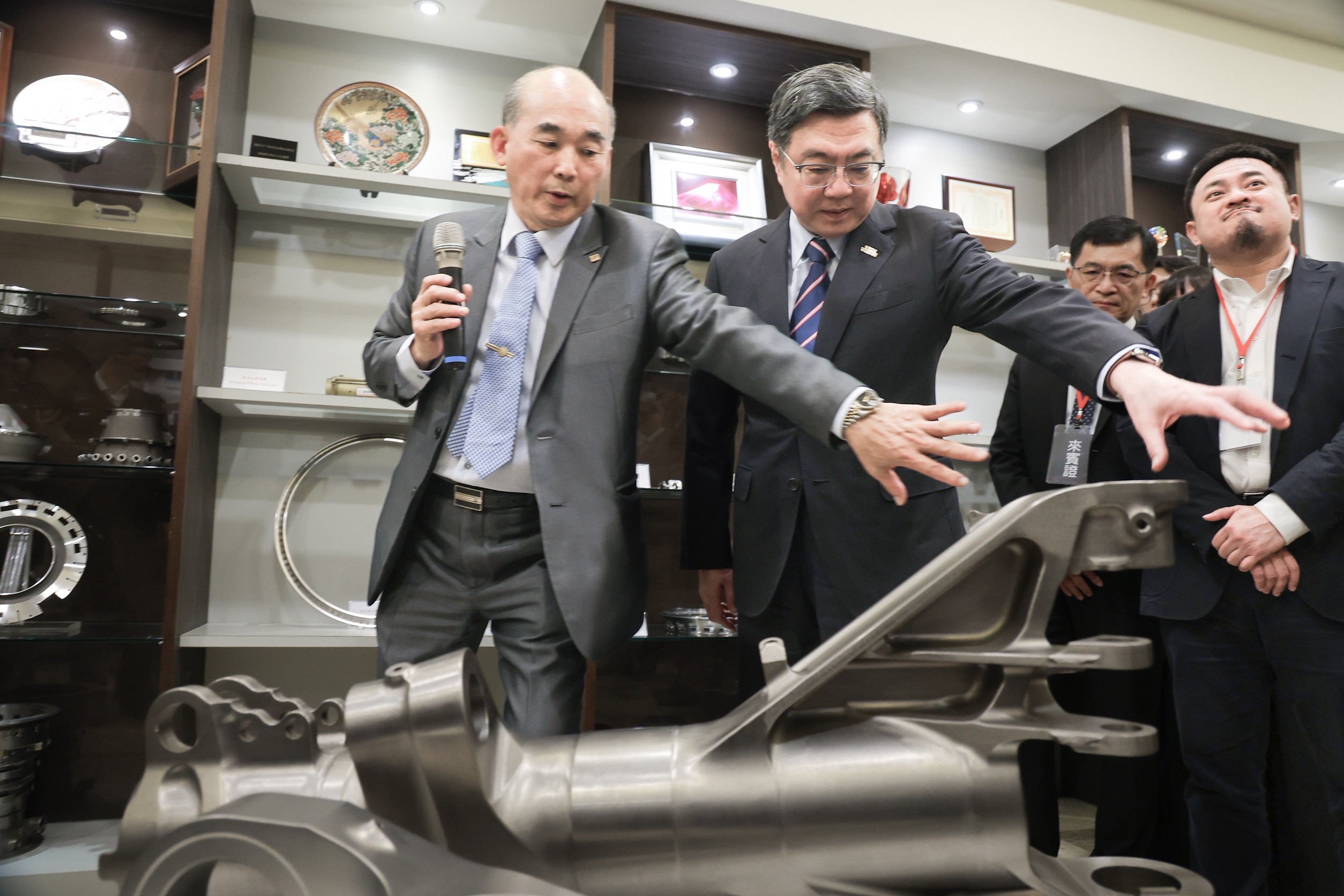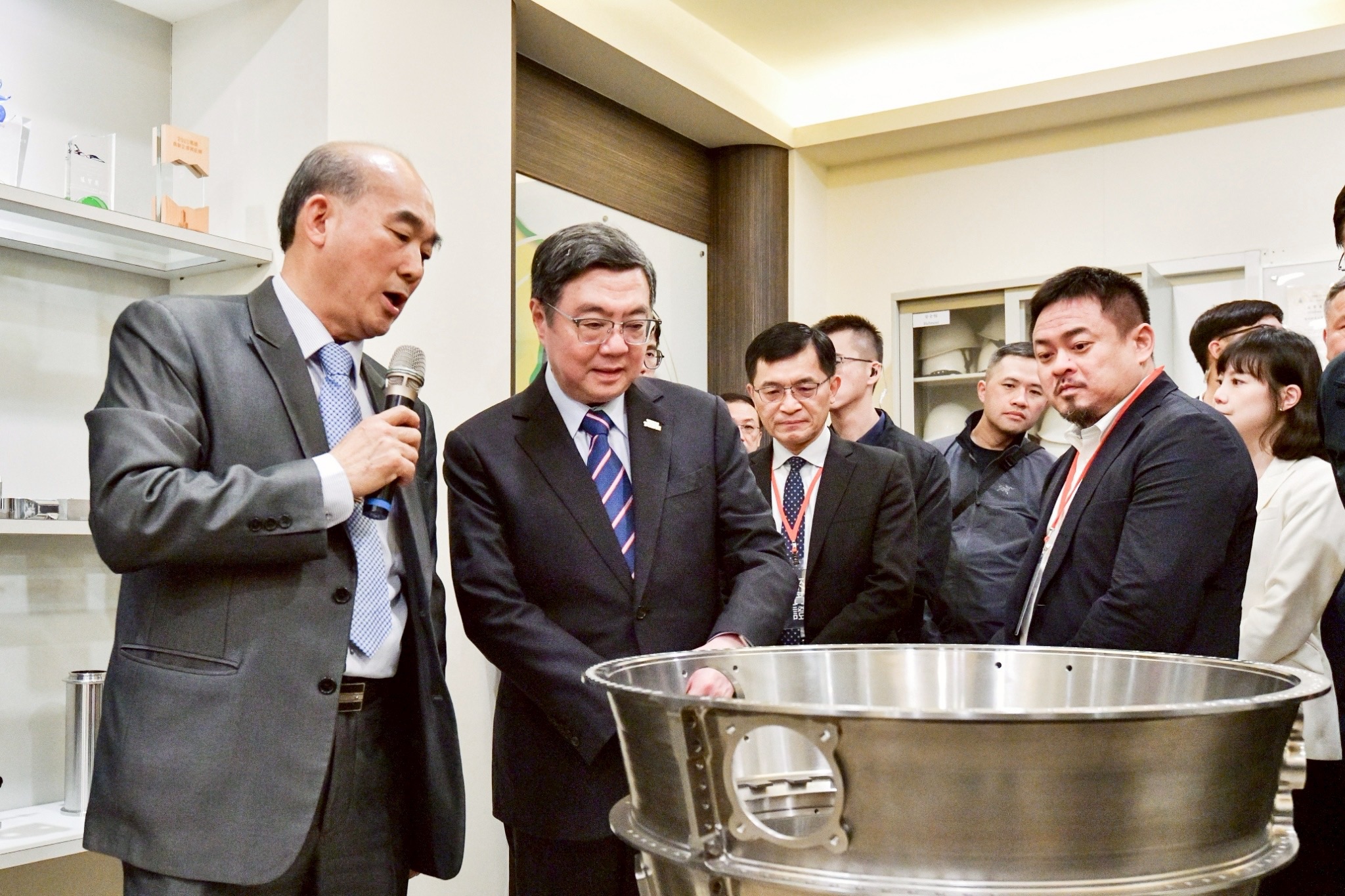 卓院長指出,賴清德總統多次提及「競逐太空、探索海洋」的國家發展方向,在「探索海洋」方面,國造潛艦「海鯤號」已於昨(29)日完成首次潛航測試,在水密性及平衡穩定性獲預期成果,象徵我國潛艦國造技術向前跨出重要一步;在「競逐太空」方面,我國航太軍工產業產值已突破1,600億元,顯示臺灣從一般性工業產品升級製造高科技精密產品的實力,例如稍早參訪的晟田公司從早期經營食品業、金屬業,升級轉型後,跨足至航太產業。