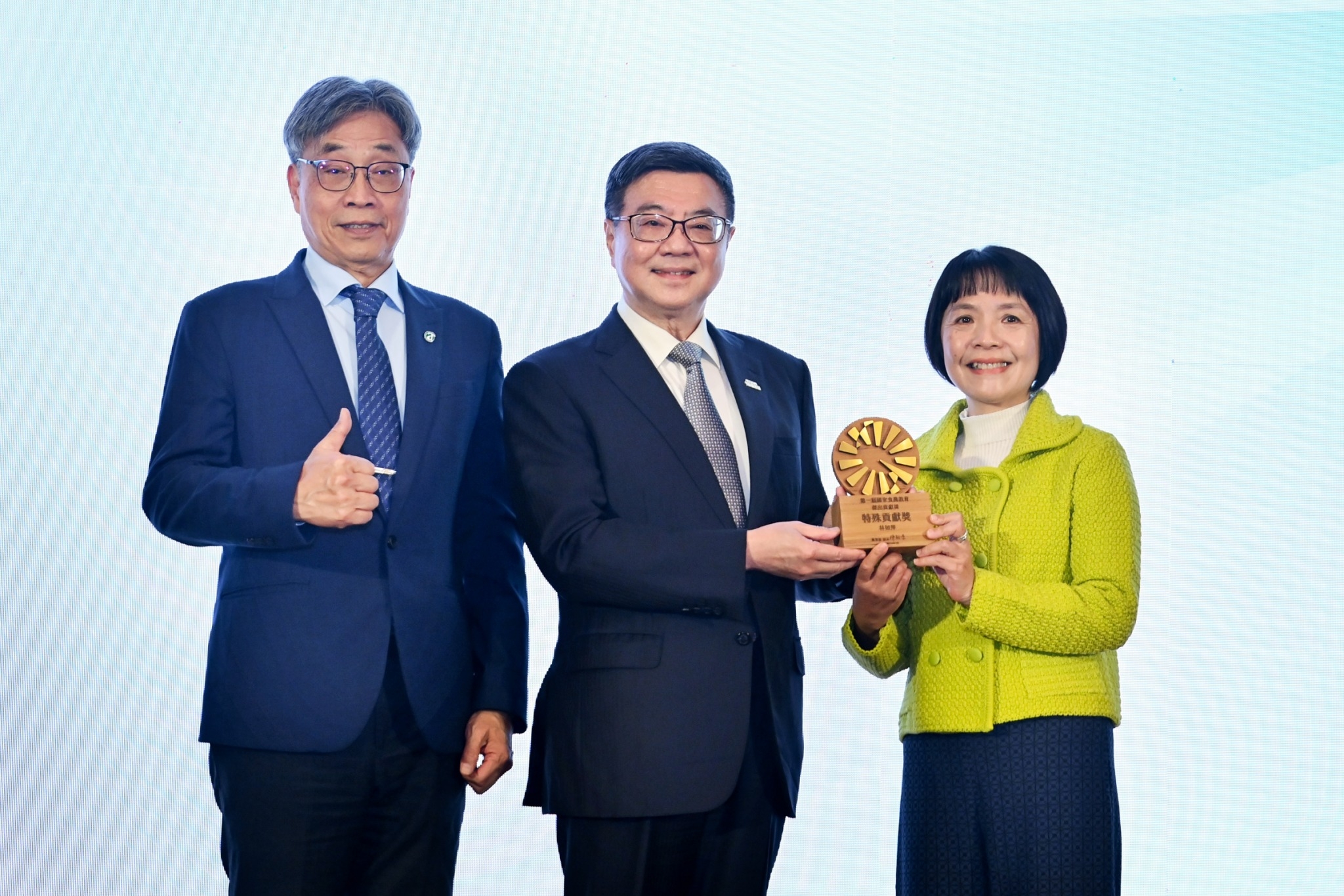 致詞結束後,卓院長首先頒發食農教育「特殊貢獻獎」予林如萍教授,接續頒發食農教育「個人組傑出貢獻獎」予推動溯源菜單及食農六感教學的臺南市立安慶國小廖肇瑞教師、籌資舉辦「梓感農村文化節」的法憲有機農場李法憲負責人、設計「八掌e公民‧興安五食力」課程的嘉義市立興安國小曾志華食育組長、舉辦「惜食大富翁」活動的臺北市立中正幼兒園蕭淑芬園長,以及創立「鮮乳坊」品牌牧可動物診所龔建嘉獸醫師。