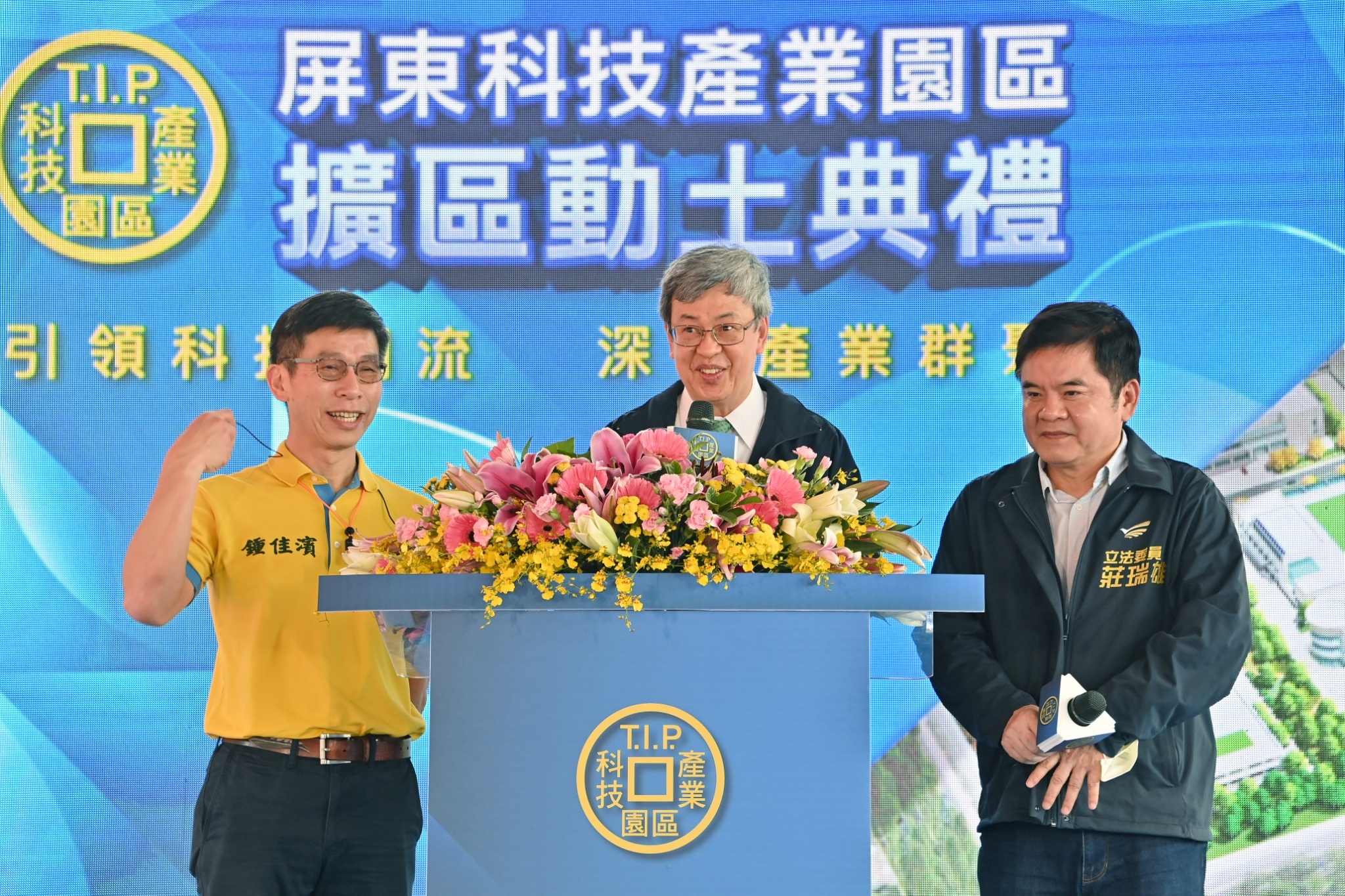 陳院長進一步表示,政府自2019年起積極推動「投資臺灣三大方案」,迄今已為臺灣帶來超過2兆元投資金額。而為布局新興產業進駐,讓產業有充裕發展空間,行政院於2年前即核定屏東科技產業園區擴區計畫,隨即經濟部亦以高效率完成土地取得、環評及開發計畫,並於今日率先舉辦動土典禮,經濟部林全能次長致詞時,亦已宣示該擴區計畫定能如期如質完成,並要加強招商,在此陳院長也對於經濟部王美花部長、林全能次長及相關同仁的努力,給予最大肯定。