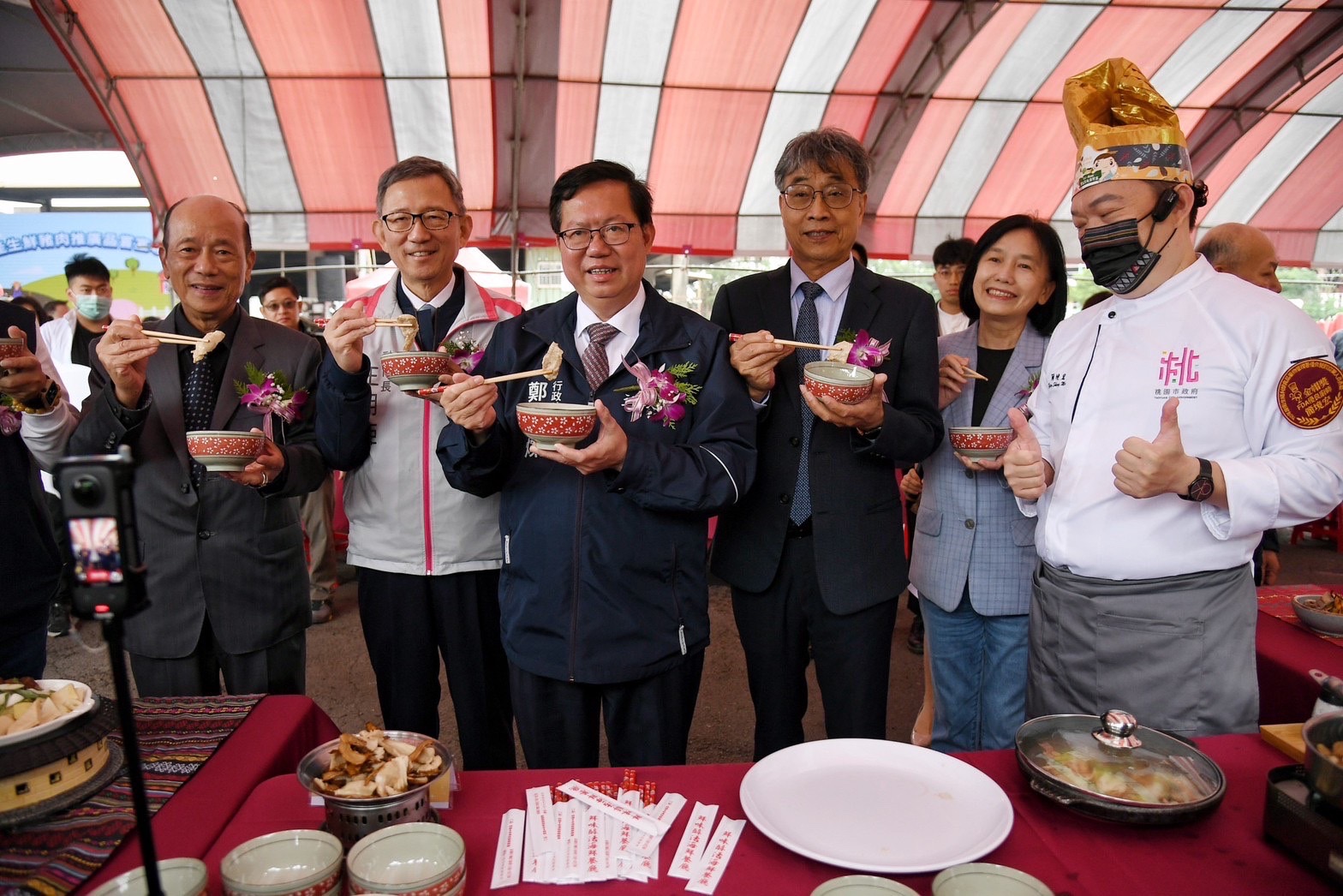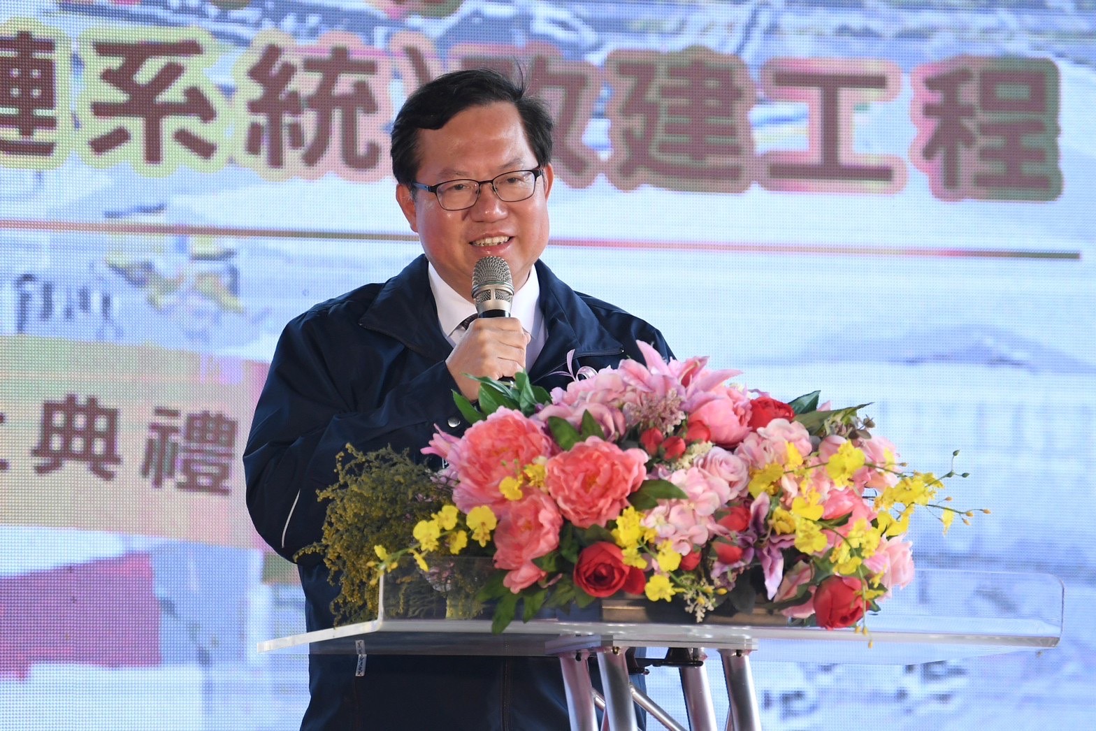 今日開工動土典禮在熱鬧的鑼鼓舞獅表演中展開,鄭副院長首先聽取改建工程簡報,隨後擔任典禮主祭官,主持祝禱儀式,上香祈求工程順利,接著與桃園市王明鉅副市長、農業部陳駿季代理部長、立法院鄭運鵬委員、桃園市議會錢龍議員、張桂綿議員、牛煦庭議員等貴賓一同手持金鏟,起鍬三鏟,完成動工儀式,副院長也在金鏟上簽名,並與貴賓合影留念。