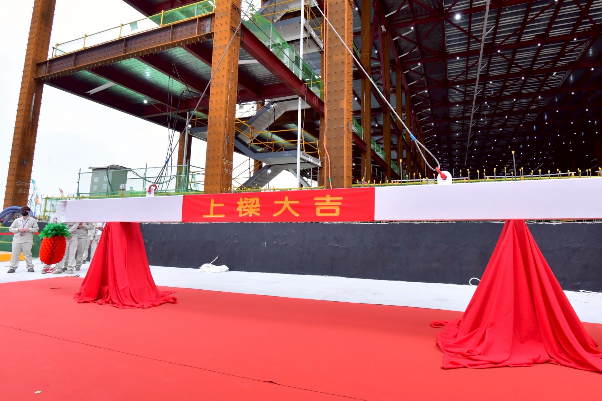 致詞結束後,卓院長與現場貴賓持香祈福,祈求擴產順利;接續進行上梁儀式,卓院長鎖金螺栓並於鋼梁親筆簽名後,偕同行政院龔明鑫秘書長、經濟部郭智輝部長、國家科學及技術委員會蘇振綱副主委、高雄市陳其邁市長、台積公司秦永沛執行副總經理暨共同營運長等貴賓合影留念;隨後,現場與會貴賓觀禮上梁,見證二奈米擴產,行政院李慧芝發言人、南部聯合服務中心許乃文執行長也陪同與會。